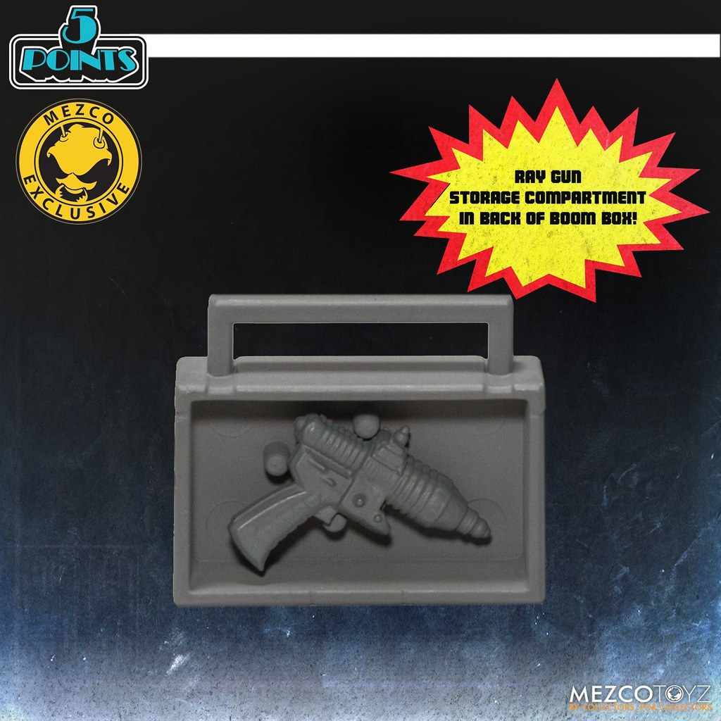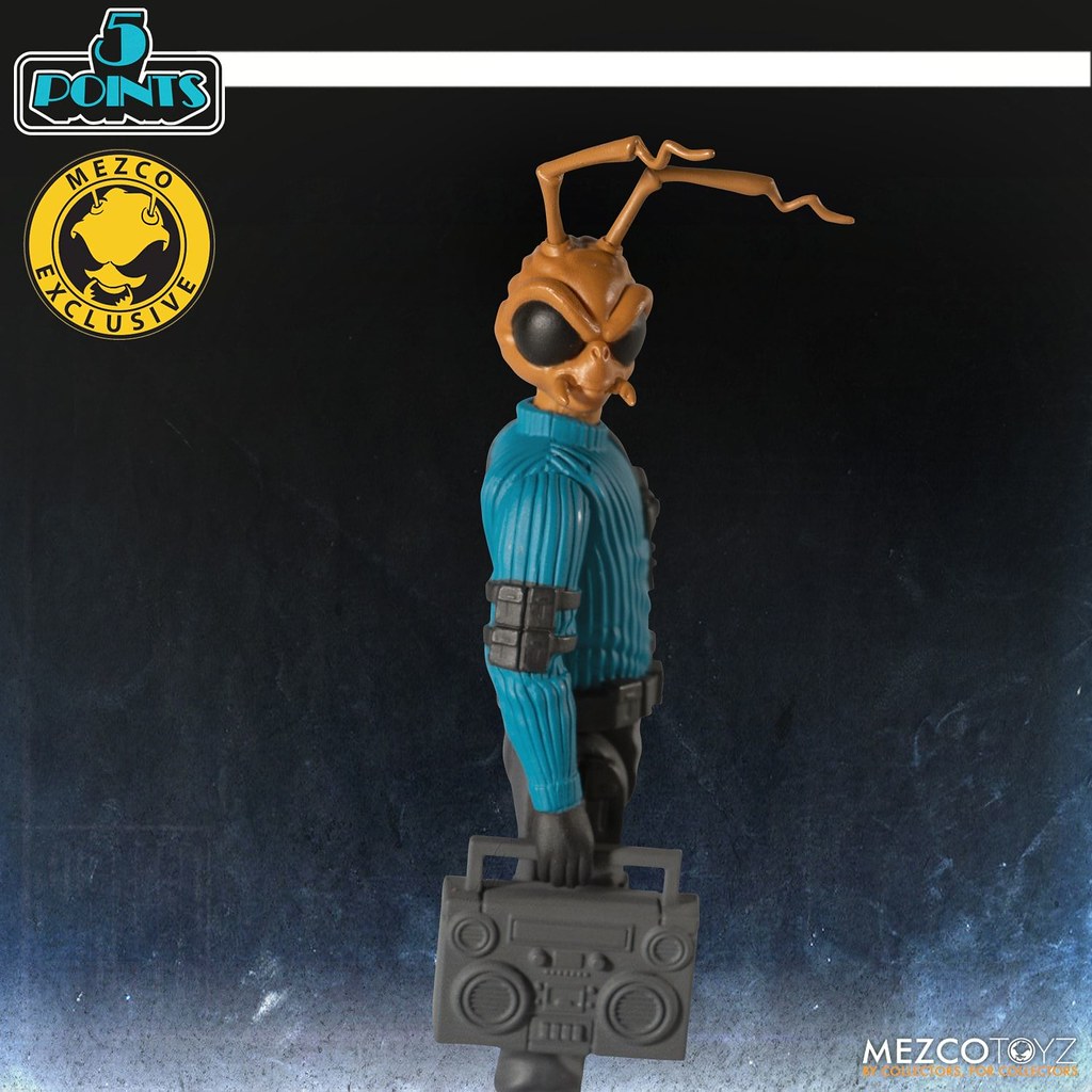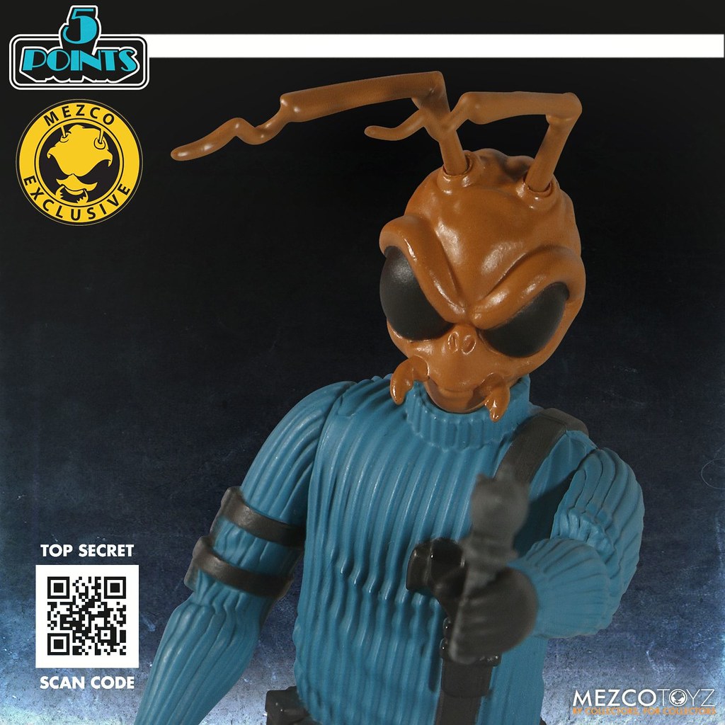 「5 POINTS Gomez: 危機小隊指揮官」高約 9.5 公分,身穿直條紋的鋼青色毛衣與黑長褲,並裝備黑色戰術背帶,除了手腳搭載的簡單可動外,Gomez 頭上的觸角也能夠轉動,配件部分包含音箱 Boom Boom 和特製雷射槍,都能拿在手上,有趣的是雷射槍還可以藏在音箱的背面,特務感十足!本作另一大賣點就是呈現出美式復古風的背卡,背面還有關於 Gomez 的背景介紹,值得收藏呀~!
