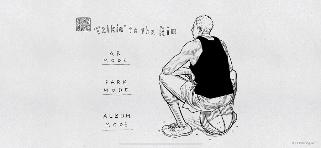 在這次官方公開的《Slam Dunk Talkin' to the Rim》中,以2D黑白的設計呈現井上雄彥老師的漫畫風格,再配上特別製作的櫻木花道3D人物與表情動作模組,將櫻木花道在公園中獨自練習投球的畫面重現。玩家可以透過 AR 擴增實境模式,讓櫻木在自己喜歡的地方練習投藍,將現實環境變成漫畫場景!