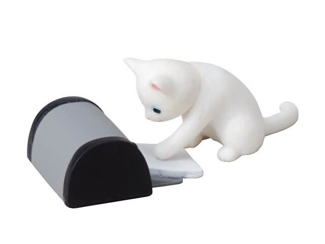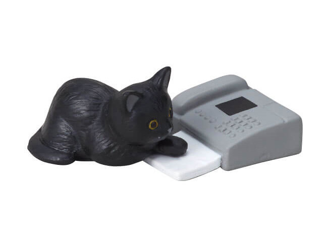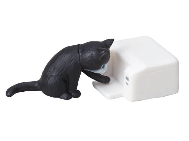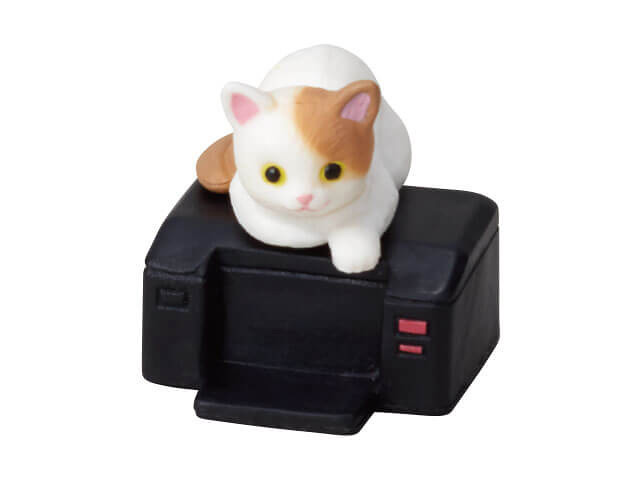 這款由 EPOCH 所推出的「貓咪與印表機」轉蛋玩具,收錄了 6 種貓咪與印表機的互動模樣,牠們和各種像是彩色印表機、傳真機、單邊印表機玩耍的模樣,還有堵住出紙口,或是慵懶躺在機器上的模樣,幾乎就和現實生活中沒什麼兩樣。所有款式的貓咪與印表機裝置都是可以分開置放的,假如你買齊全系列,也可以互相交換搭配喔!