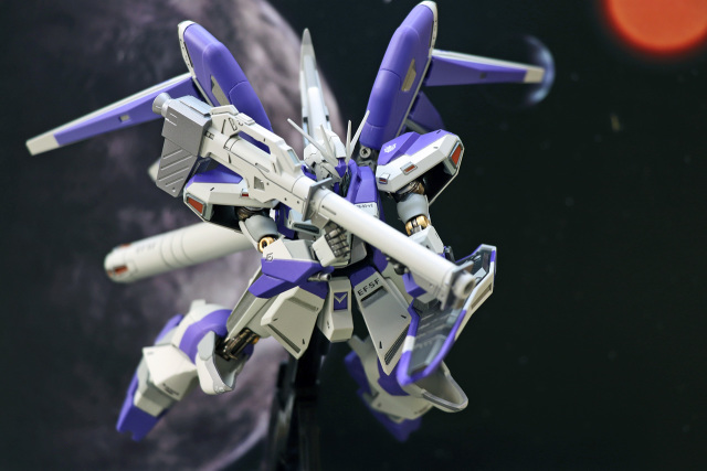 於逆襲的馬沙小說版《貝爾嘉的子嗣》中出現。之後的設定改為 RX-93 的發展型,與原機不同,本機經過了充分的測試才投入戰場,性能與 RX-93 較為高,最大的改進為翼狀感應炮在收納狀態時可以進行充電。