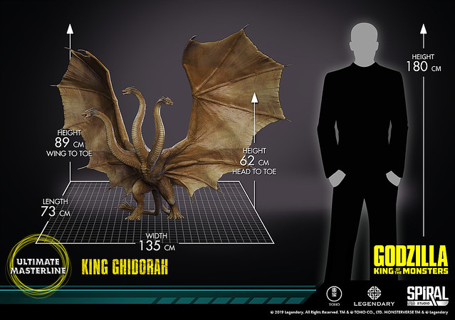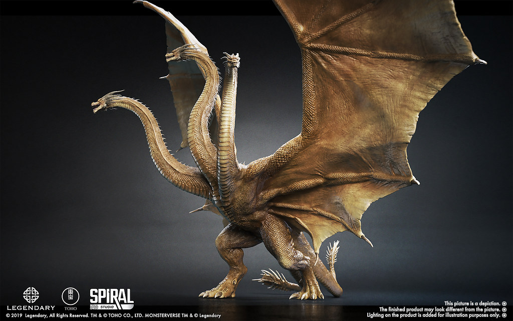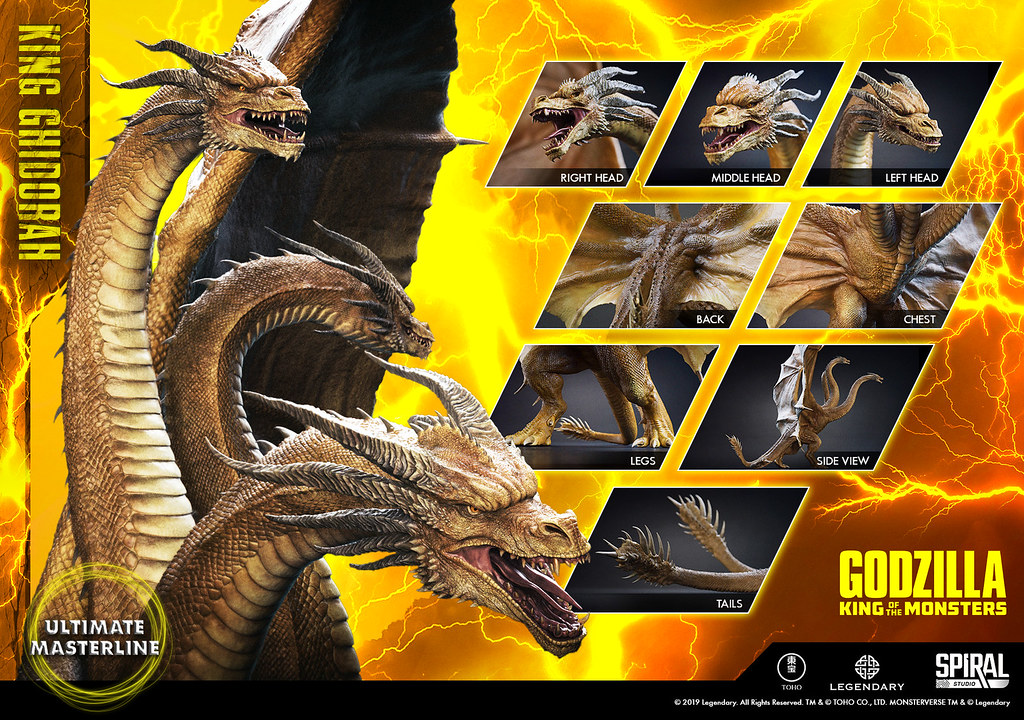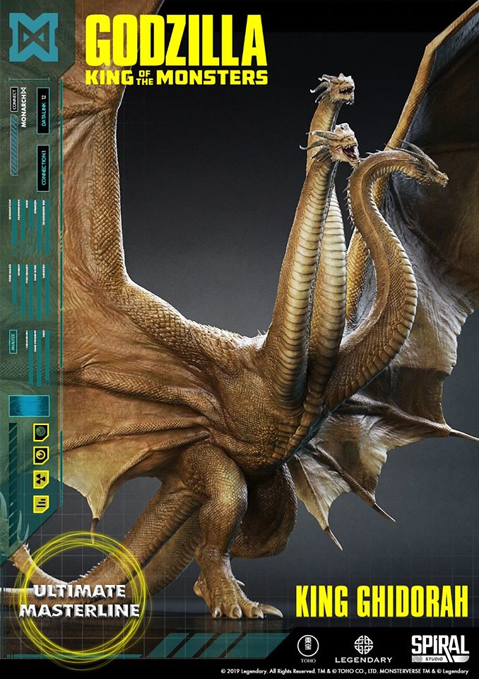 泰國新成立的藝術收藏品工作室 SPIRAL STUDIO,於十月份釋出了首個作品:終極大師系列的王者基多拉雕像(Ultimate Masterline - King Ghidorah 2019 Statue)預購消息,以2019年電影作品《哥吉拉 II 怪獸之王》(Godzilla: King of the Monsters)中的基多拉為設計,推出高達35英寸的大尺寸雕像。參考售價為美金$ 1,175元,預購時間至11月30日止,全球限量550體,預計於2020年4月-6月發售。
