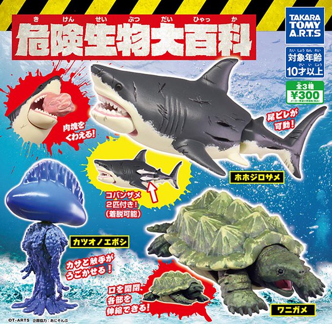 知名日廠Takara Tomy(株式会社タカラトミーアーツ)旗下暢銷熱賣的轉蛋品牌T- ARTS將推出一款讓人眼睛為之一亮的新作品:危險生物大百科(危険生物大百科),全三款,一轉300日幣,預計 2020年 3月發售。