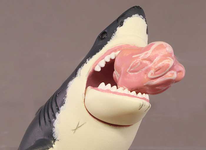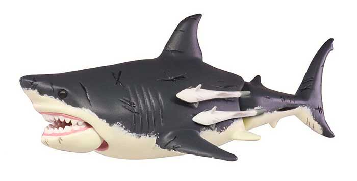 以危險生物為主題,推出了大白鯊(ホホジロザメ)、僧帽水母(カツオノエボシ)與鱷龜(ワニガメ)三種款式,這次除了整體設計相當精緻以外,還有趣味的可動設計!大白鯊款有可以左右擺動的尾巴與開合的下顎,並附上肉塊可以上演餵食秀;在尾側還有可以拆卸的兩隻鮣魚,十分有趣有具有巧思。