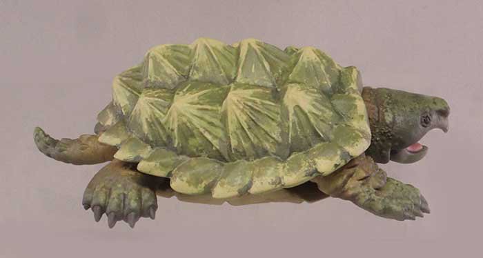 僧帽水母的刺細胞毒素可以令獵物癱瘓,並且連脫落的觸鬚都可在數小時內造成同樣的傷害。毒觸手可以擺動的設計,讓整體看起來像是站立的異形,帶有不明生物的詭異感。而鱷龜則是設計為頭部可以縮進殼內、下顎能開合(但沒有附東西給他咬QQ),背部的龜殼塗裝與細節都很精緻,以轉蛋來說算是誠意十足!