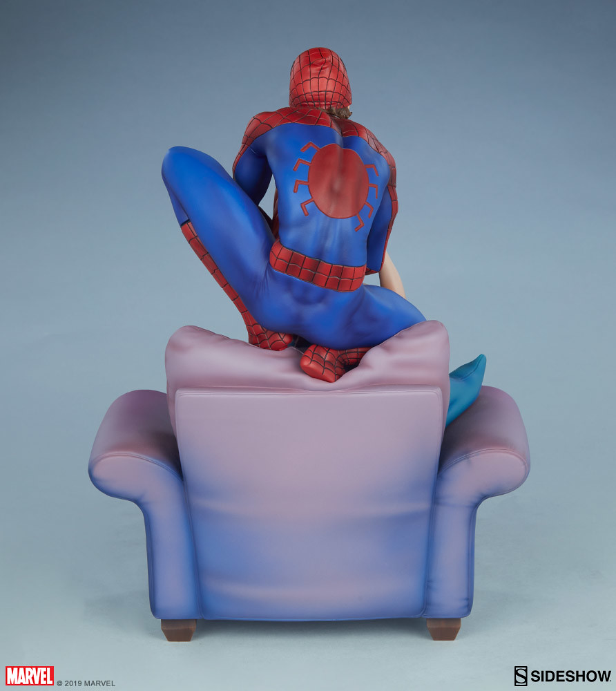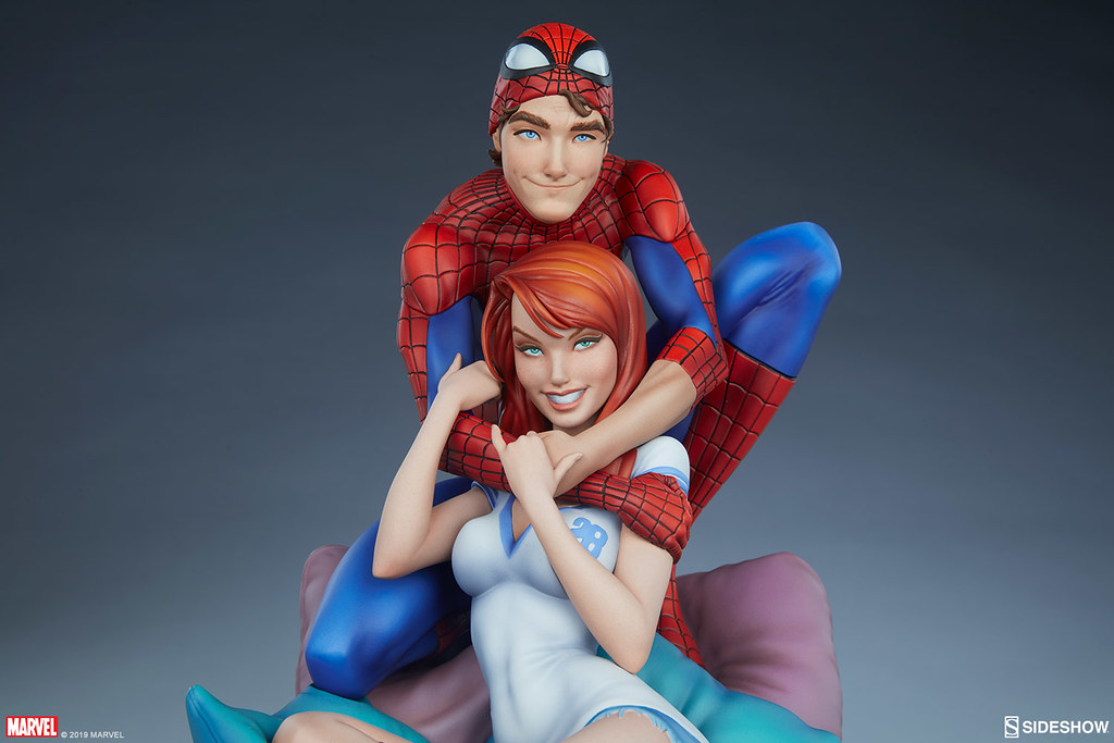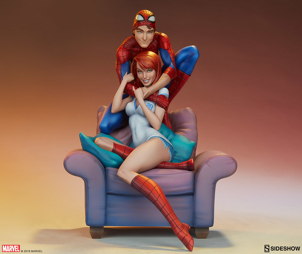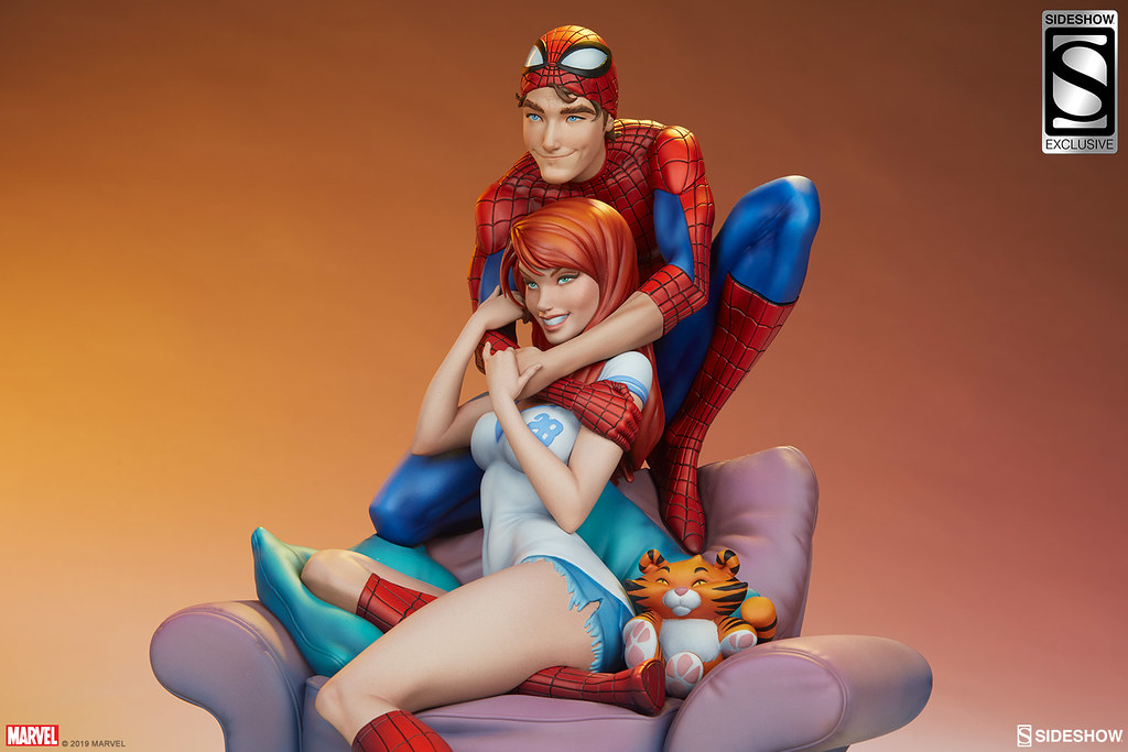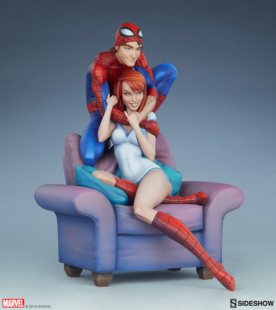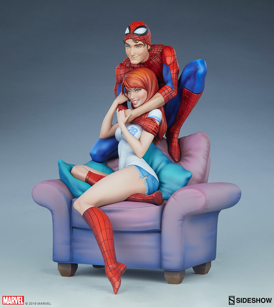 本作高約 31.7 公分,再現了 The Amazing Spider-Man: Renew Your Vows #1 漫畫封面裡彼得與 MJ 十分甜蜜的造型,身穿經典紅藍緊身衣的彼得拉起了蜘蛛面罩、露出幸福的笑容,雙手摟著 MJ 的脖子,而回握彼得雙手的瑪莉·珍形塑出迷人的身形線條,修長的雙腿還套著紅色格紋蜘蛛裝,沙發、枕頭因兩人動作而產生的皺褶細膩地刻畫,陰影效果讓寫實感再加分,EX版中還追加了超可愛的老虎娃娃配件。