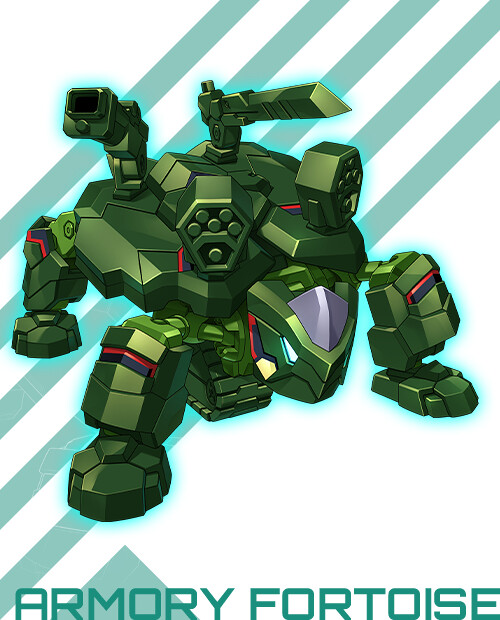 龜型的 ARMORY FORTOISE 全身採用堅硬的重型裝甲,背部甲殼上能搭載複數武裝,腹部則有履帶能提昇機動力,不僅本身汎用性高、也能輔助我方替換武器零件。其本身熱衷於收集武器,凡是遇見其他 ANIMAGEAR 都會上前聊起「交易武器」的話題。