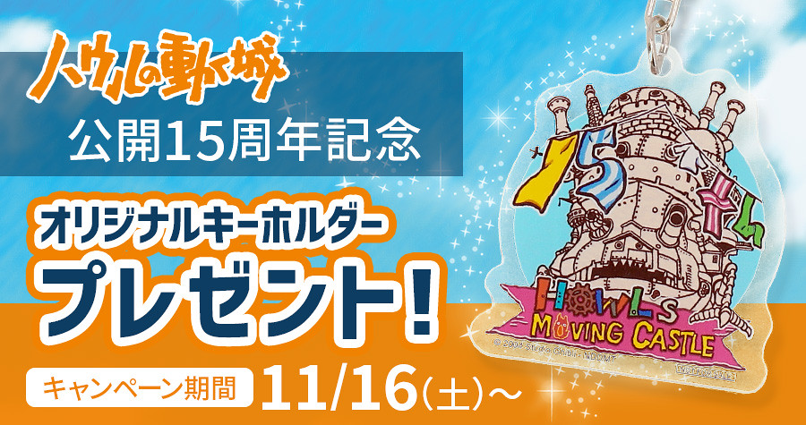為了紀念吉卜力工作室電影《霍爾的移動城堡》(ハウルの動く城)上映15週年,吉卜力專賣的橡子共和國商店(どんぐり共和国)和其網路商店donguri-sora舉辦「《霍爾的移動城堡》電影上映15週年紀念活動」。除了推出多款全新周邊商品,也有滿額贈送限量吊飾的活動,從2019年11月16日正式開始。