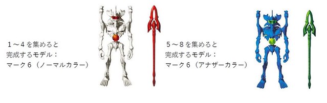 即將發售的第二彈收錄了新規的「初號機」、「2號機」、「初號機恐龍」、「骨骼 14 使徒」四種造型,每款都有一般的骨骼配色與異色兩種版本,眼睛、核心等部位使用透明零件。整體使用的零件數量、可動性、尺寸都比第一彈更加進化,其中「初號機恐龍」具備變形機構。蒐集齊四種造型零件更能組合出渚薰駕駛的「福音戰士 Mark.06」!