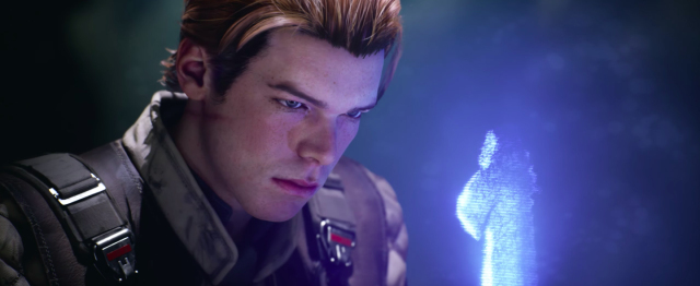 主角叫做 Cal Kestis,是位在第66號密令下倖存的絕地學徒,他也跟《星際大戰:反抗軍起義》的其中一位主角-肯南相同,為了不被帝國追捕而選擇低調活在銀河系的社會裡面,所以各位可以看到他在 Scrapper Guild 這個替帝國回收和分解複製人戰爭期間的武器其商業行會之中工作。