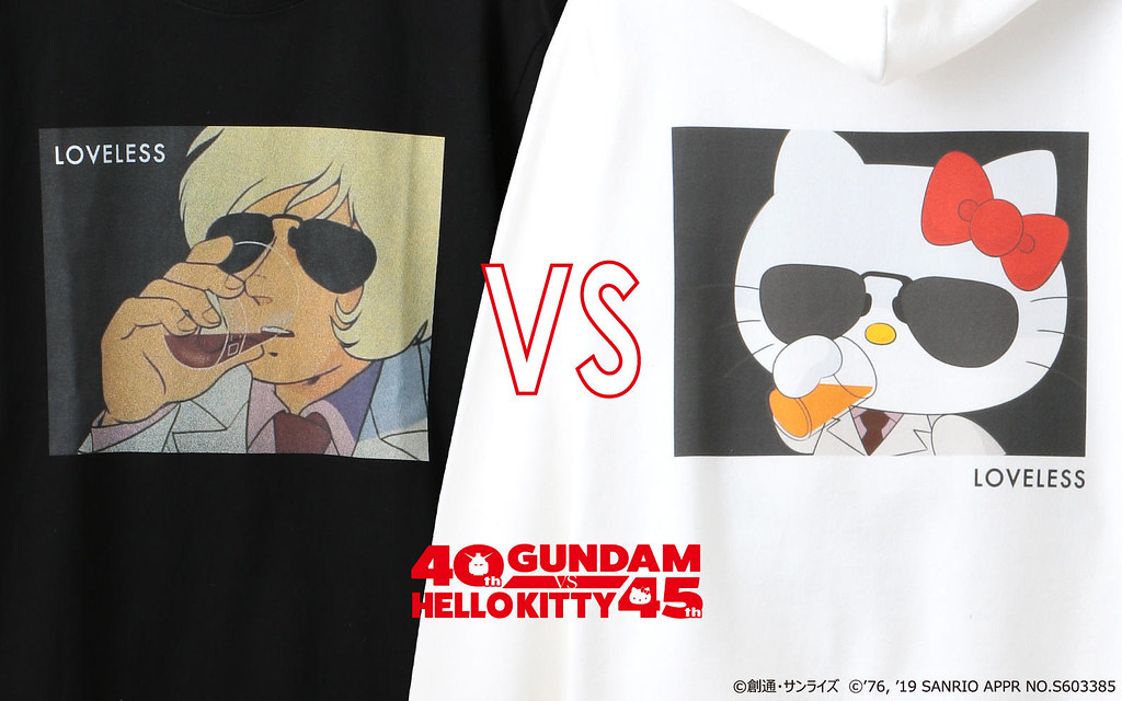 為慶祝今年 40周年的人氣動畫《機動戰士鋼彈》與誕生 45周年的三麗鷗明星《HELLO KITTY》,雙方展開合作企劃,推出一系列「GUNDAM VS HELLO KITTY PROJECT」(ガンダムvsハローキティプロジェクト)的夢幻對決活動,這次又與日本知名的潮流文化服飾品牌 LOVELESS聯名,推出 LOVELESS × 鋼彈 vs HELLO KITTY的系列商品!已於日本的 LOVELESS店鋪、GUILD PRIME商店進行販售。