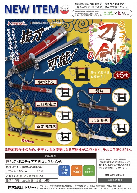 該系列將日本歷史上出現過的名刀,以較為可愛的造型,做成可愛的轉蛋玩具,目前該系列來到最新的第 6 彈,預計在 2019 年 12 月推出,同樣收錄了五把日本歷史上的名刀劍如下: