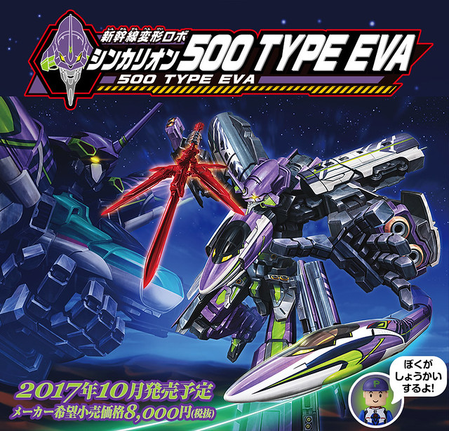 「Shinkalion 500 TYPE EVA」的原型來自 2015 年《福音戰士》與日本山陽新幹線合作的彩繪列車「500 TYPE EVA」。2017 年,由 TAKARA TOMY 推出的《新幹線變形機器人》玩具企劃將此列車加入陣容,不僅推出了變形玩具,後來更在動畫版《新幹線變形機器人》31話、即將上映的劇場版《新幹線變形機器人 來自未來的神速 ALFA-X》中登場。