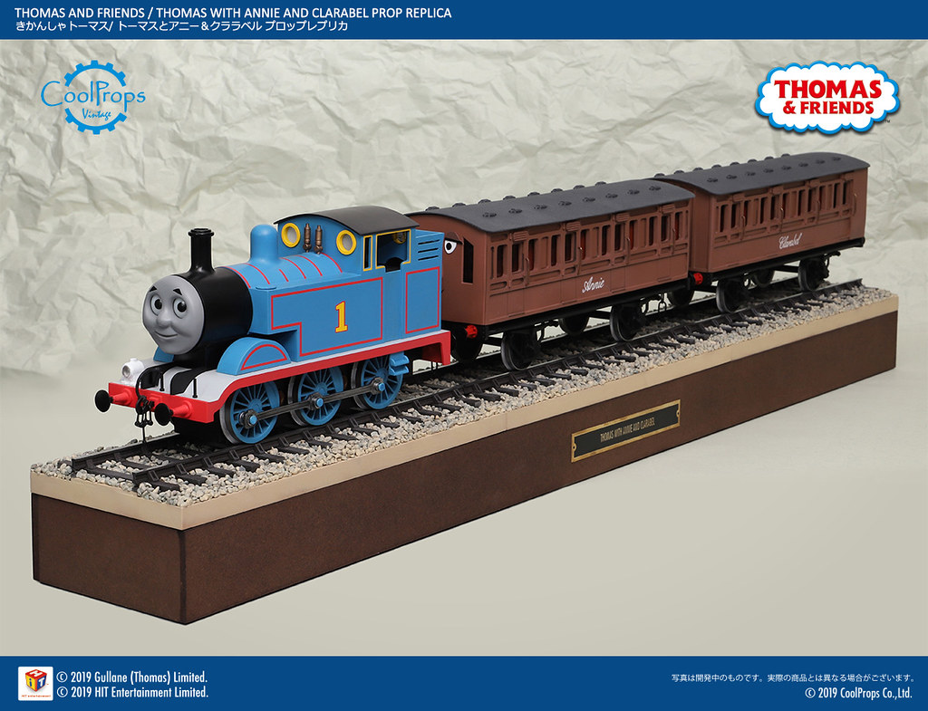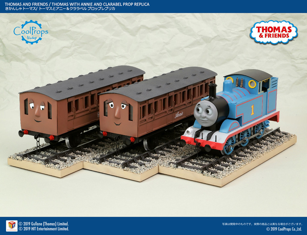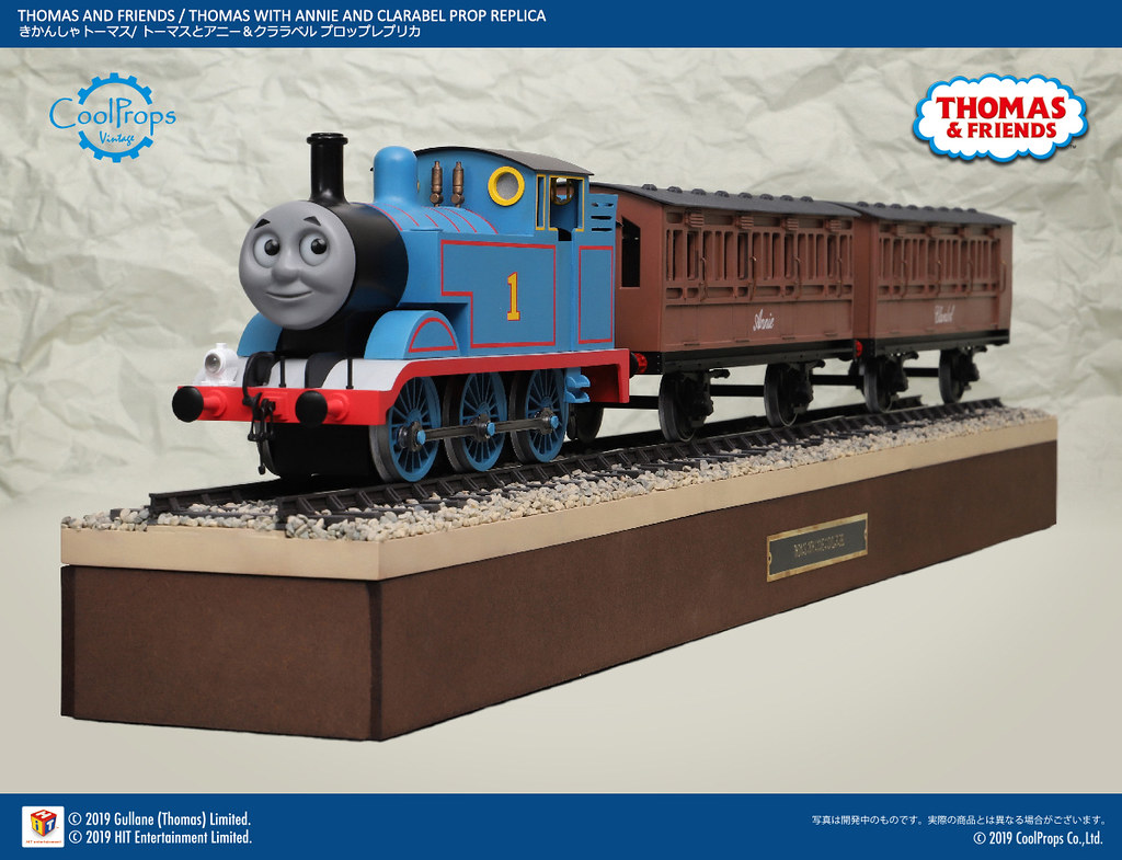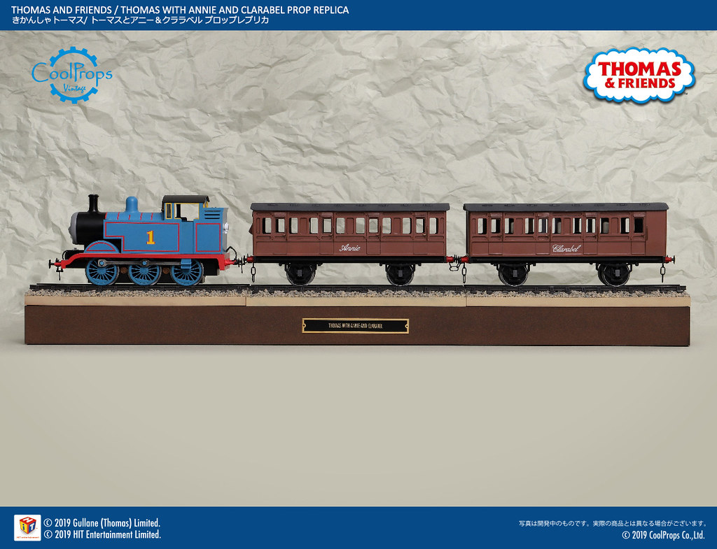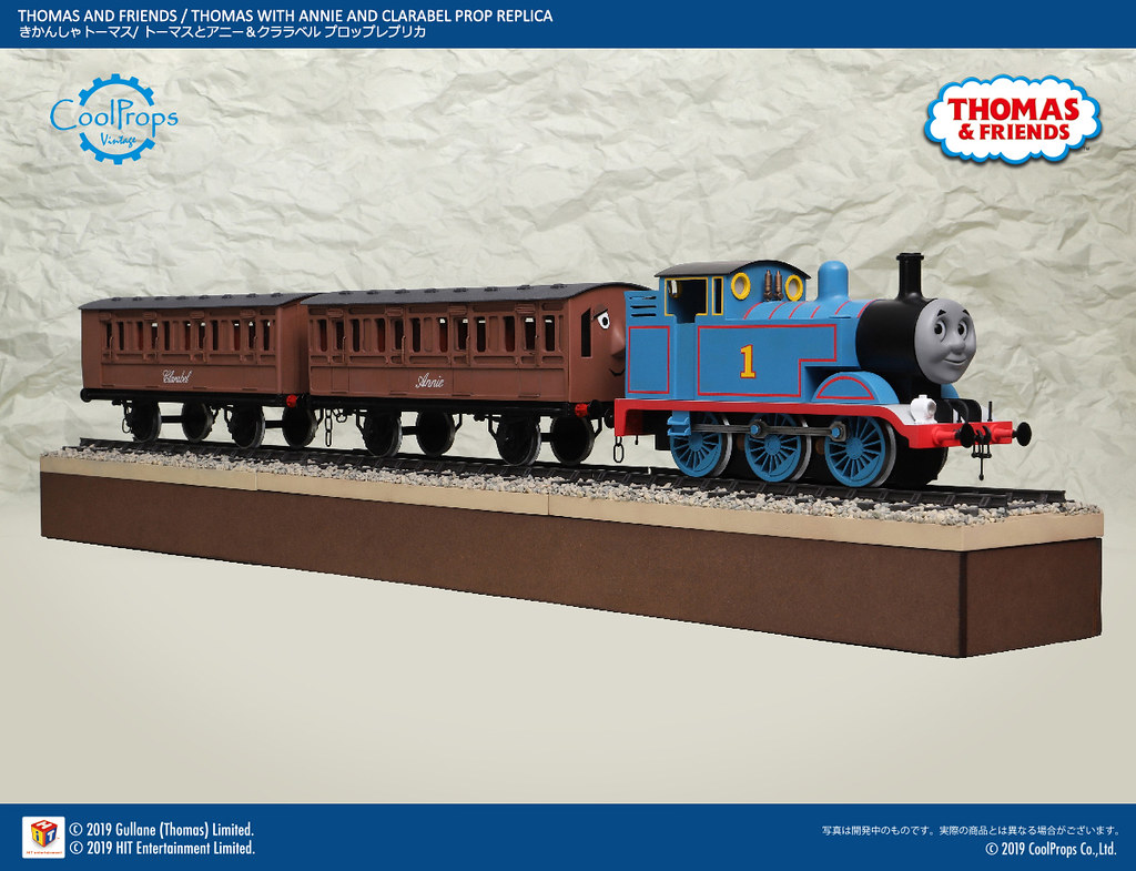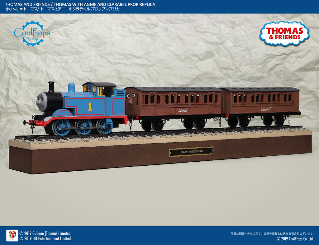 日本高端道具複製品牌CoolProps 公司以製作極精細雕像聞名,其作品包含:《魔物獵人:世界》滅盡龍、《終極戰士:掠奪者》逃犯終極戰士、《異形:聖約》異形等作品,而這次以同樣玩美複製的精神推出了新作:《湯瑪士小火車》湯瑪小士火車與乘用車安妮和克拉貝兒(THOMAS WITH ANNIE AND CLARABEL PROP REPLICA)的動畫複製道具,參考售價為165,000日元,預計於2020年限量發售。
