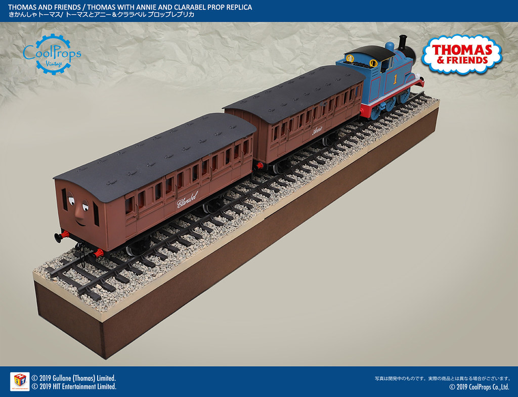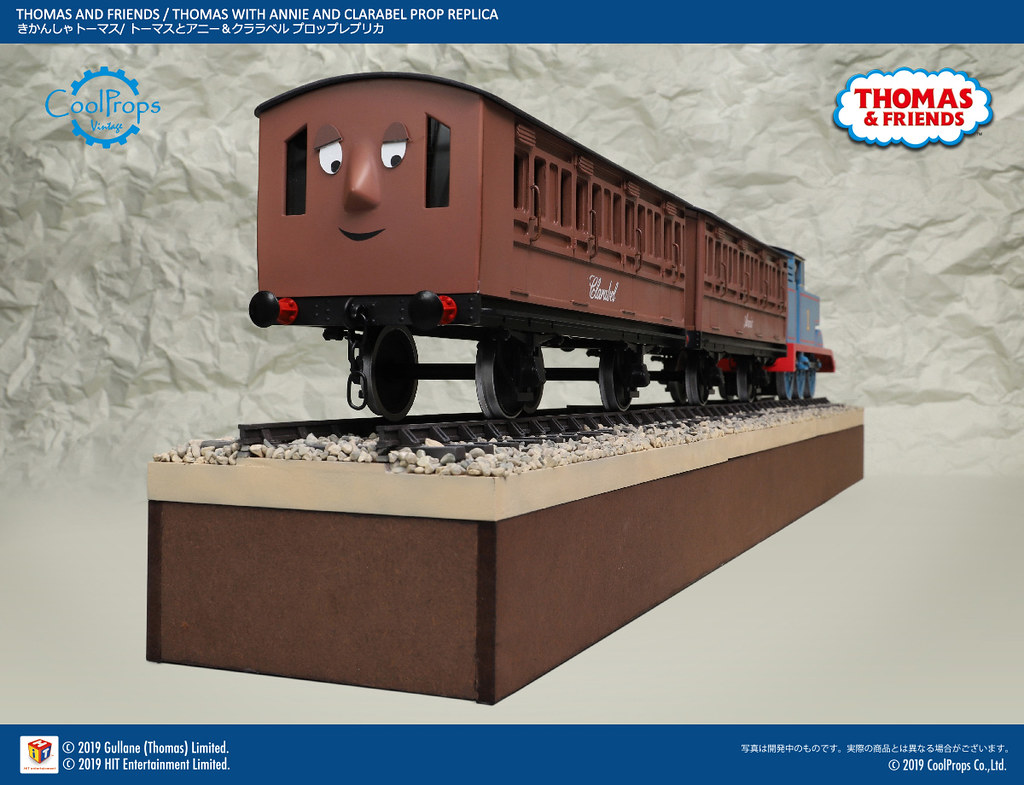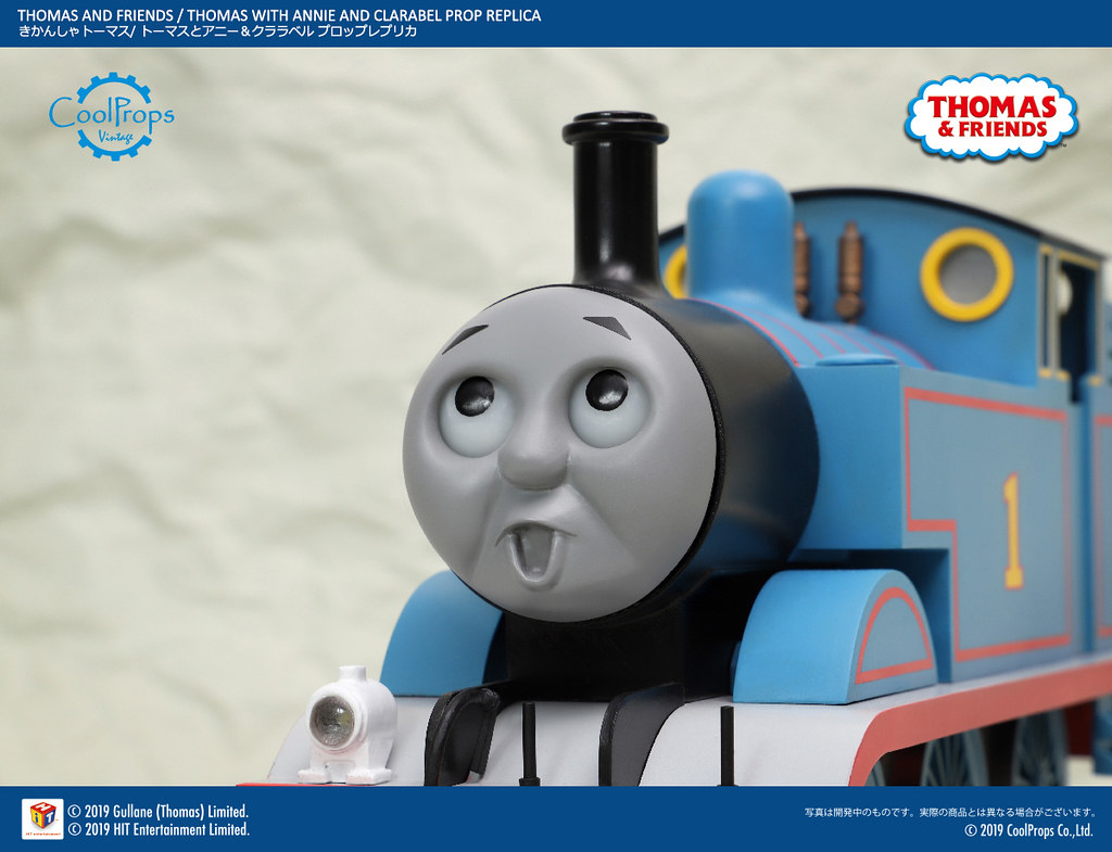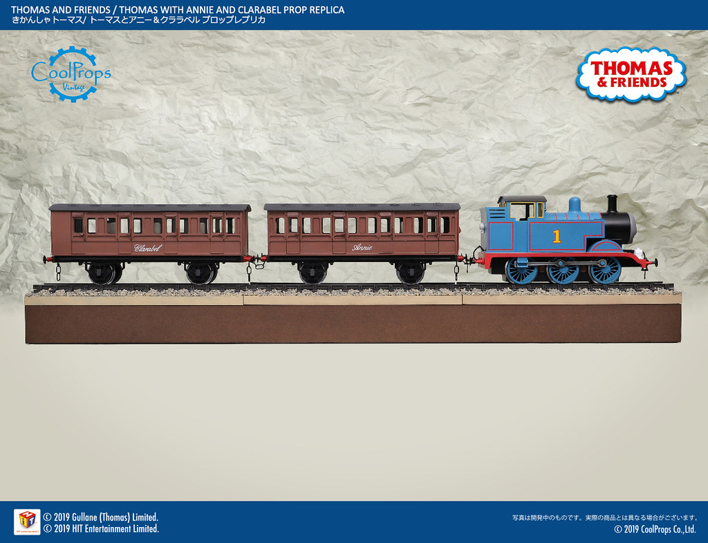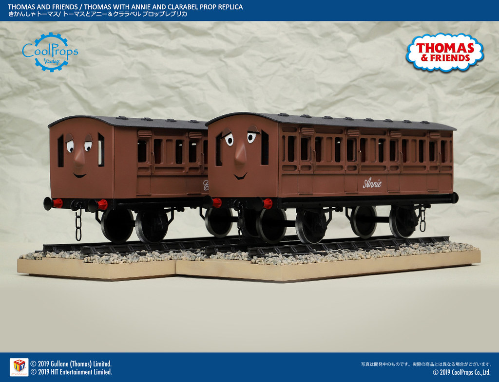 日本高端道具複製品牌CoolProps 公司以製作極精細雕像聞名,其作品包含:《魔物獵人:世界》滅盡龍、《終極戰士:掠奪者》逃犯終極戰士、《異形:聖約》異形等作品,而這次以同樣玩美複製的精神推出了新作:《湯瑪士小火車》湯瑪小士火車與乘用車安妮和克拉貝兒(THOMAS WITH ANNIE AND CLARABEL PROP REPLICA)的動畫複製道具,參考售價為165,000日元,預計於2020年限量發售。