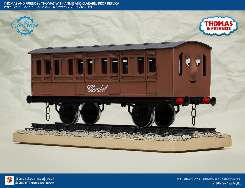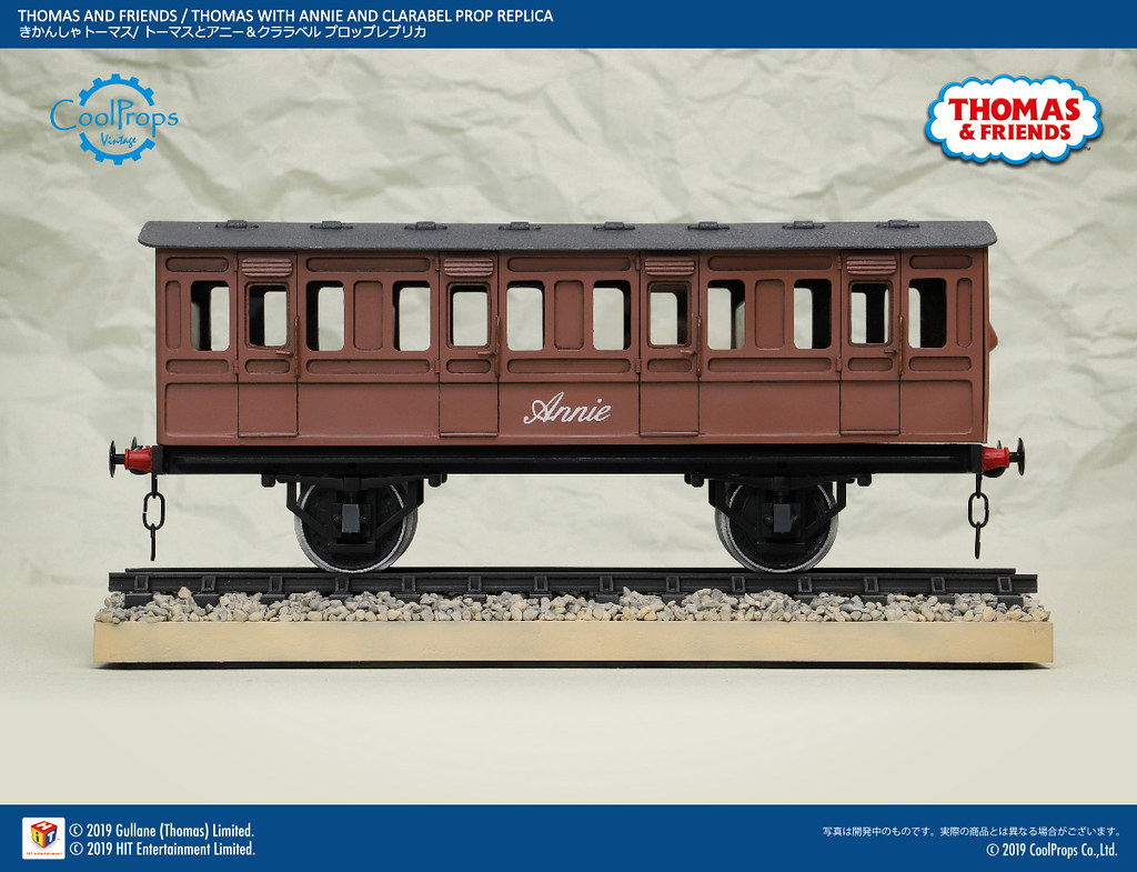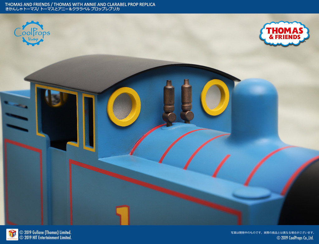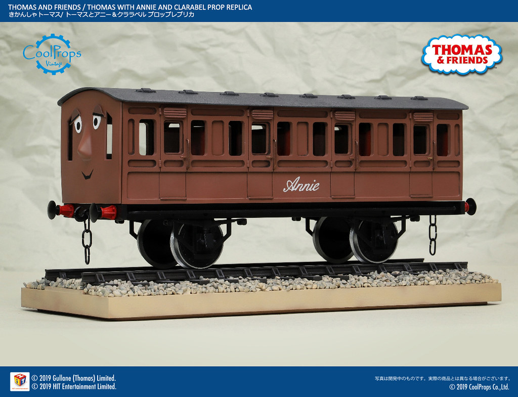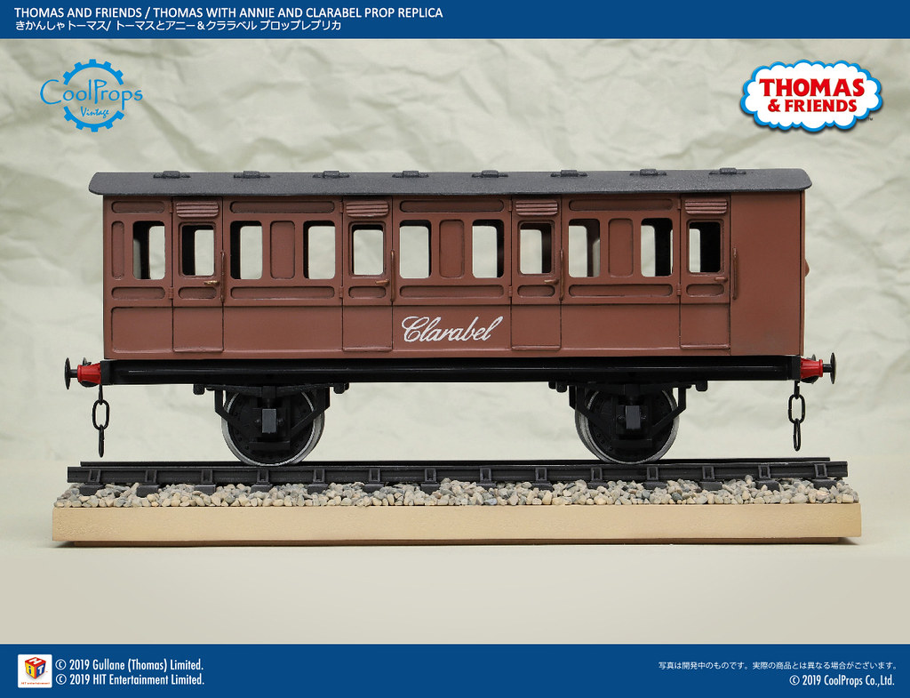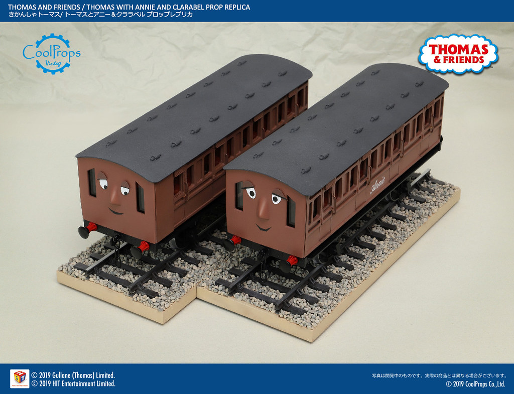 日本高端道具複製品牌CoolProps 公司以製作極精細雕像聞名,其作品包含:《魔物獵人:世界》滅盡龍、《終極戰士:掠奪者》逃犯終極戰士、《異形:聖約》異形等作品,而這次以同樣玩美複製的精神推出了新作:《湯瑪士小火車》湯瑪小士火車與乘用車安妮和克拉貝兒(THOMAS WITH ANNIE AND CLARABEL PROP REPLICA)的動畫複製道具,參考售價為165,000日元,預計於2020年限量發售。