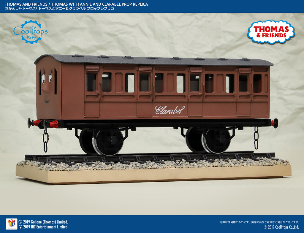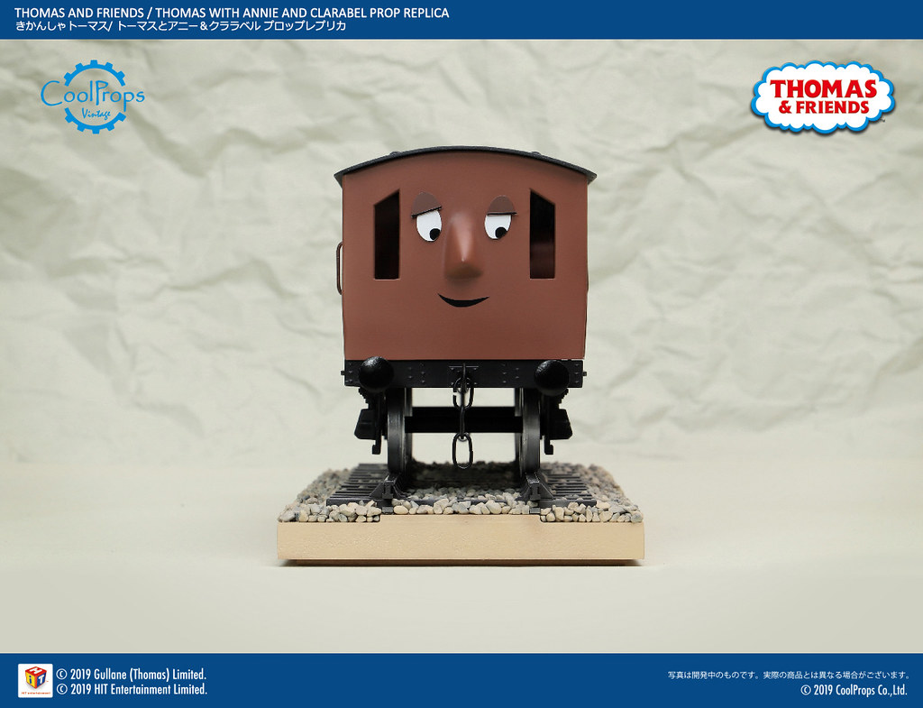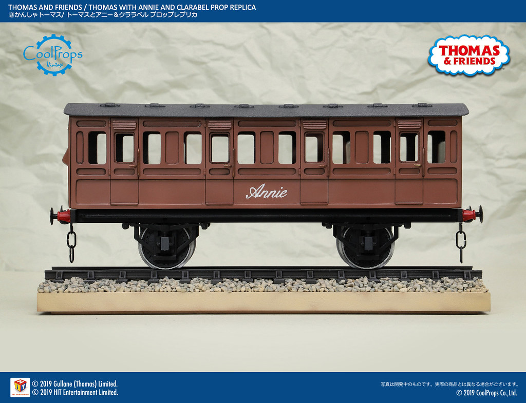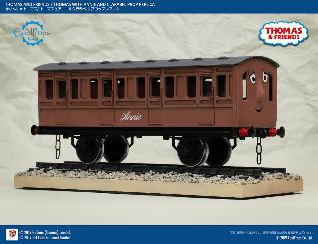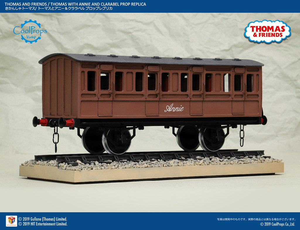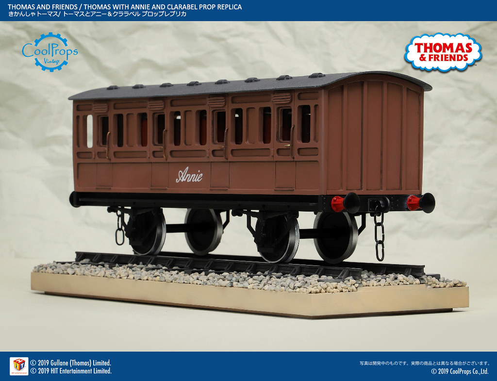 日本高端道具複製品牌CoolProps 公司以製作極精細雕像聞名,其作品包含:《魔物獵人:世界》滅盡龍、《終極戰士:掠奪者》逃犯終極戰士、《異形:聖約》異形等作品,而這次以同樣玩美複製的精神推出了新作:《湯瑪士小火車》湯瑪小士火車與乘用車安妮和克拉貝兒(THOMAS WITH ANNIE AND CLARABEL PROP REPLICA)的動畫複製道具,參考售價為165,000日元,預計於2020年限量發售。