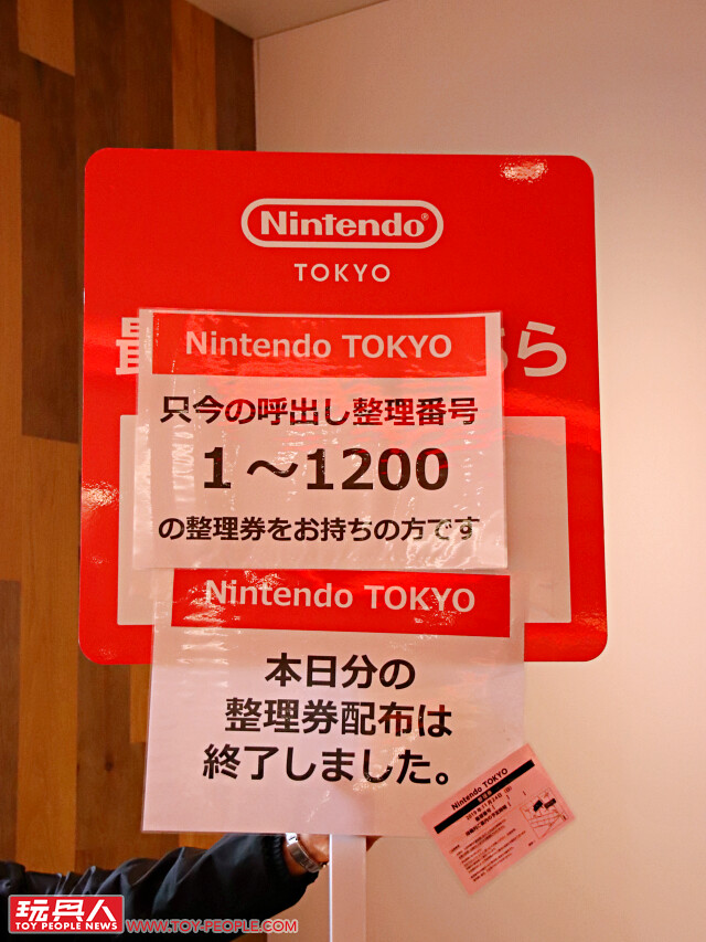 由於現在是開幕期間,為了控制進場人數,Nintendo TOKYO 會在當天早上發放「整理券」(也就是進場號碼牌),上頭會有你的編號跟排隊入場時間,必須要在指定排隊時間內進入隊伍喔!依照小編這次週日(11/24)的入場經驗,約在 9:00 A.M 左右抽到整理券,排隊入場時間則是中午的 12:30 P.M,太晚到的話整理券可能會被抽光喔,像是小編在排隊的時候就聽到許多無法入場的嘆息聲呀~