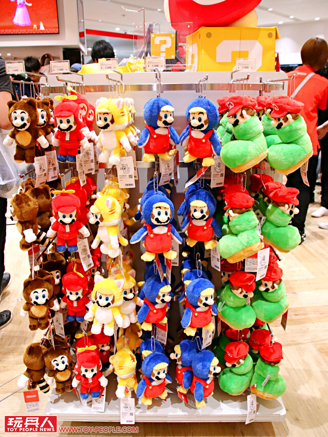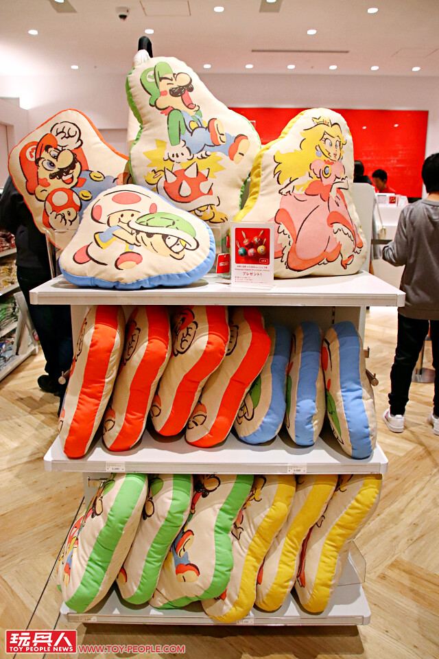 ▼ 先來看看世界最受歡迎的水管工、《超級瑪利歐》的區域吧!從擺放起來超療癒的布娃娃吊飾、椅墊、午餐墊,穿起來超可愛的服飾,到讓你的生活處處充滿瑪利歐的各式周邊:提袋、盤子、可疊馬克杯、手機殼、小物包,荷包君已乾枯。