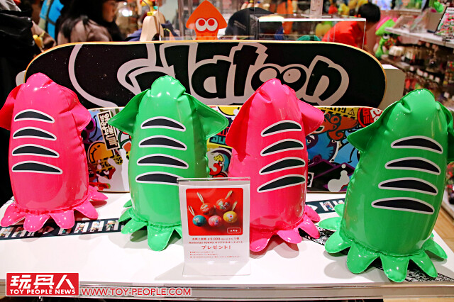▼ 再來是色彩超繽紛的《漆彈大作戰》專區,以男孩、女孩、烏賊為題所製作的周邊商品陣容非常豪華,墨靈吊飾絕對是要來一個的吧?!小裁判貓的娃娃實在太可愛啦~如果是熱愛街頭運動的玩具人,也可以考慮購入《漆彈大作戰》主題的滑板板身、運動毛巾跟郵差包喔。