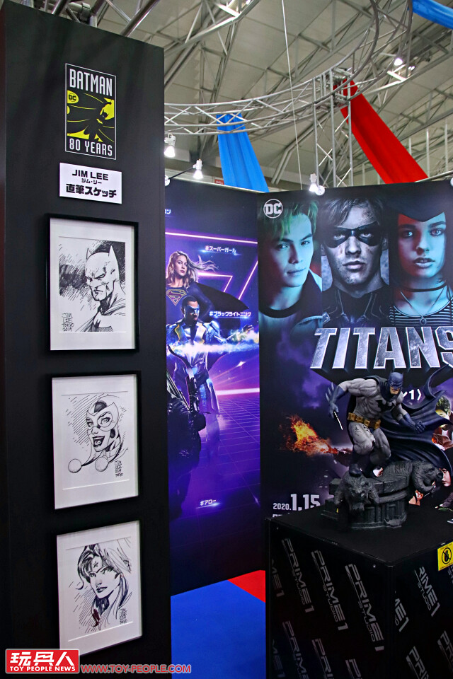 除了這裡的攤位,在 MARVEL 的展區裡也展示了漫威與日本知名少年漫畫出版社「集英社」合作推出的多位日本漫畫家畫作,另外,在華納的 DC 攤位裡,還有美漫大師 Jim Lee 親筆繪製的蝙蝠俠、哈莉·奎茵、神力女超人頭像,Jim Lee 更是在 Prime 1 Studio 出品、來自《蝙蝠俠:緘默》的「蝙蝠俠」雕像上作畫、簽名!