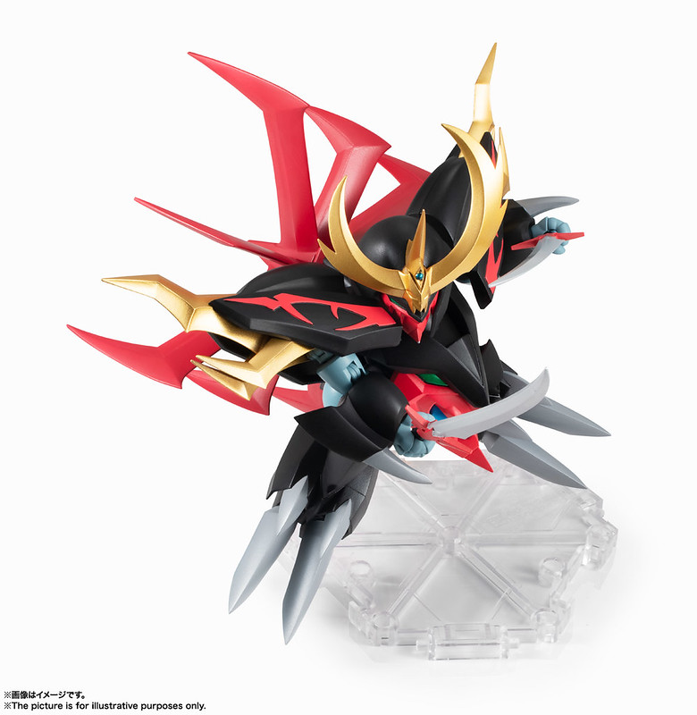 「NXEDGE STYLE[MASHIN UNIT] 邪戰角」以洗練精悍的造型再現紅黑配色的邪戰角,兩張臉構成的身軀極具魄力,並以金色塗裝兜飾、肩飾。背部螺旋狀的錨可卸下再現發射的模樣,配件中則有兩把劍讓你施展「魔界武一郎流」!