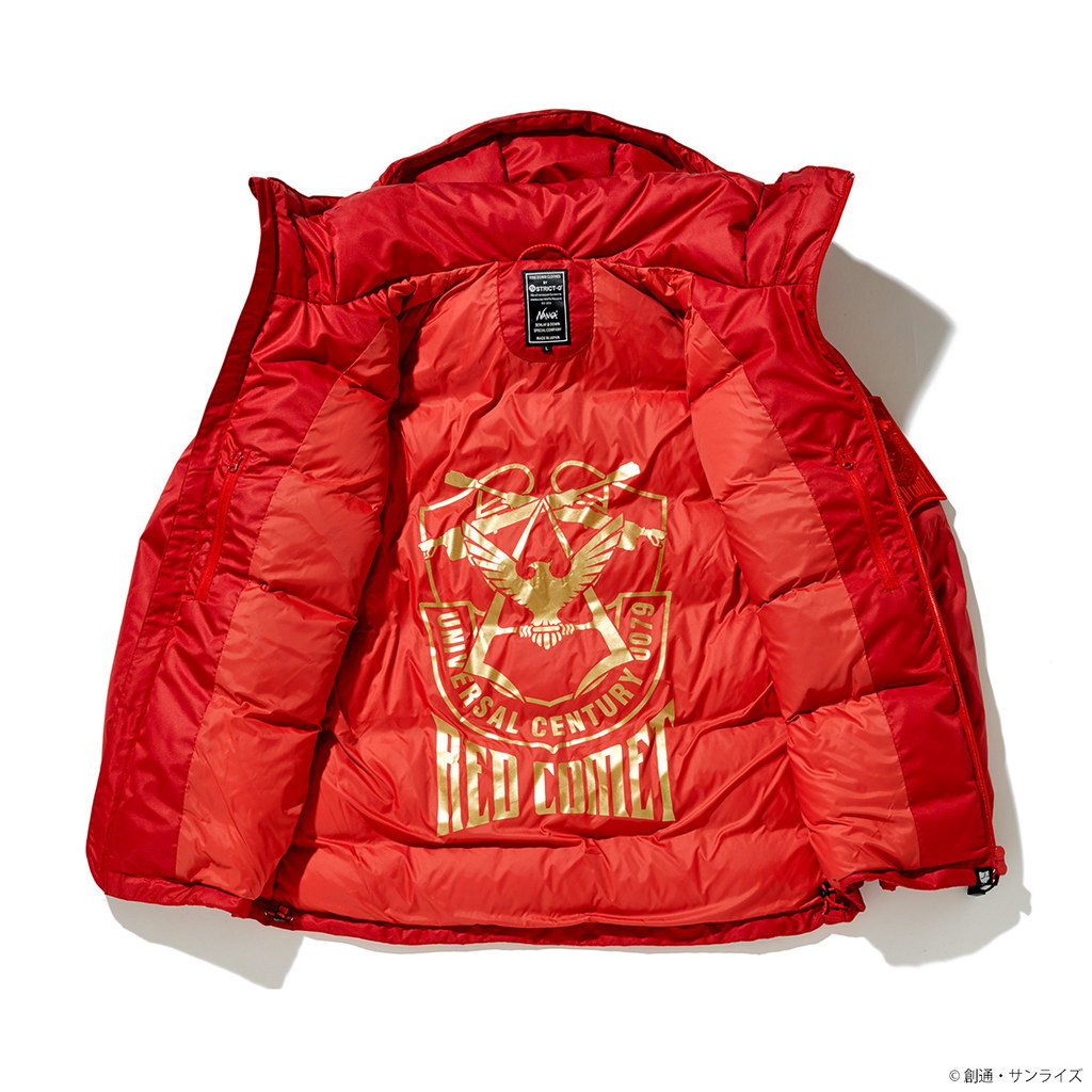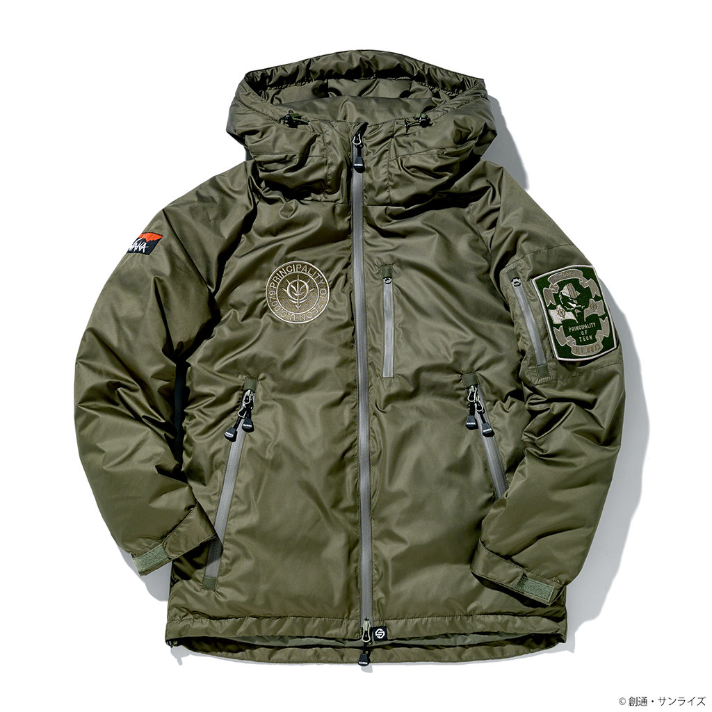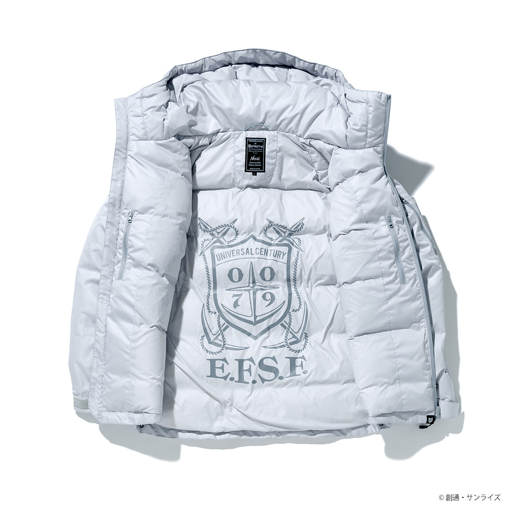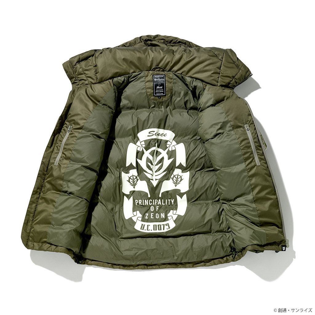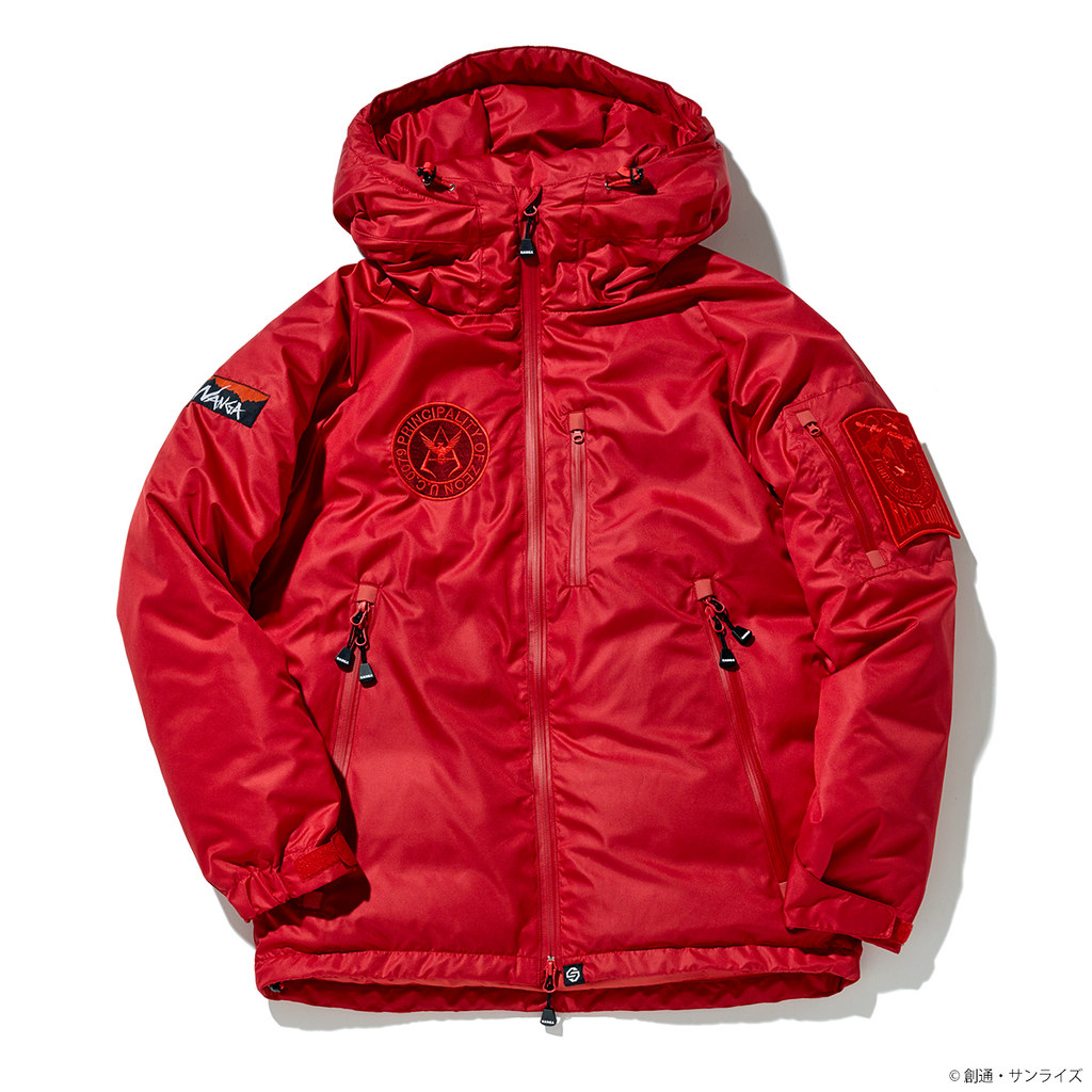 這是 STRICT-G 和 NANGA的第四次聯名,戶外品牌「NANGA」以生產睡袋聞名,推出的羽絨系列講究的「Made In Japan」高規格生產,設計融合街頭風格,不只戶外運動,也適合生活休閒穿搭。極細緻的表面纖維與高密度織物取代塗料的防水技術,質地柔軟,H2OFF面料製成,兼具備防水與保暖的特性。羽毛使用NANGA 的高質量西班牙毛線的白鴨絨。推出三種款式分別為:地球聯邦軍款(地球連邦軍モデル)、夏亞款(シャアモデル)、吉翁軍款(ジオン軍モデル),以銀白色、紅色、卡其軍綠色為色調。