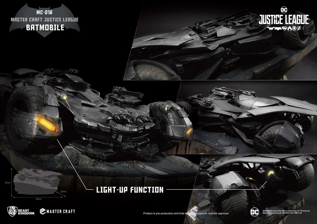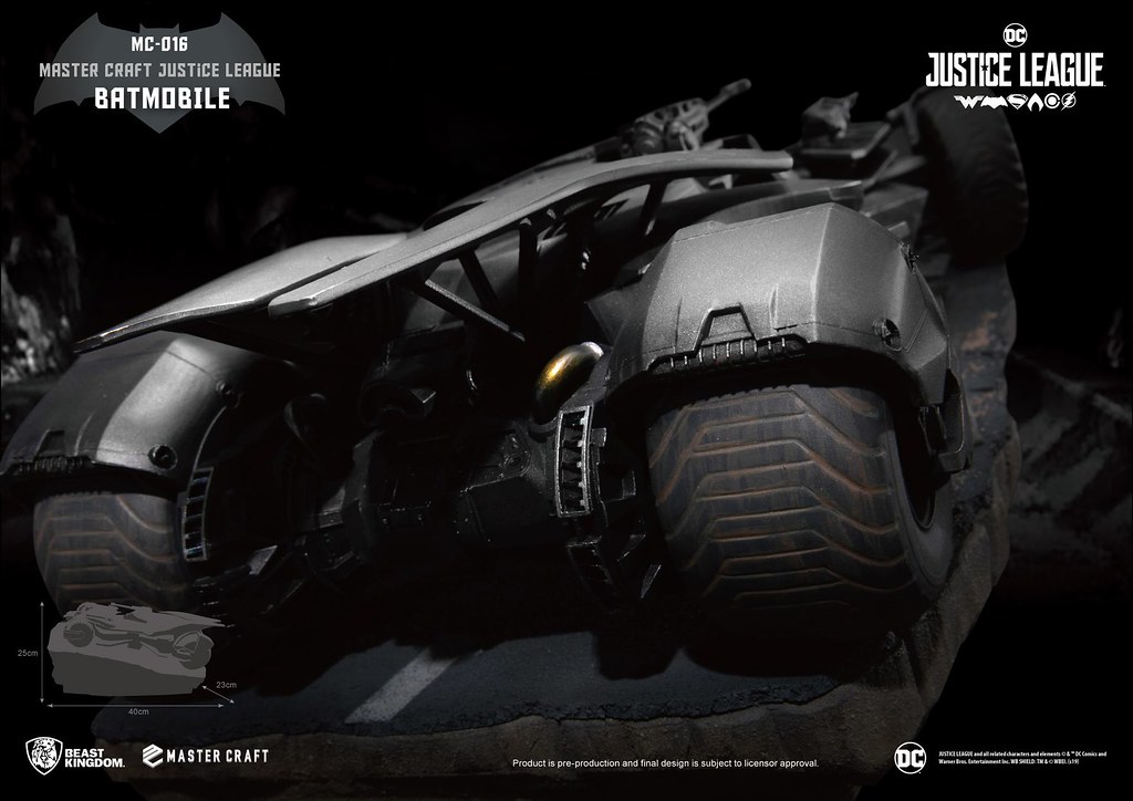 台灣玩具品牌野獸國(Beast Kingdom)旗下的「Master Craft(極匠)」系列日前發表了來自 DC 電影《正義聯盟》的超硬派雕像新作,蝙蝠俠的「蝙蝠車」(Batmobile)!預計將於 2020 年第一季發貨。