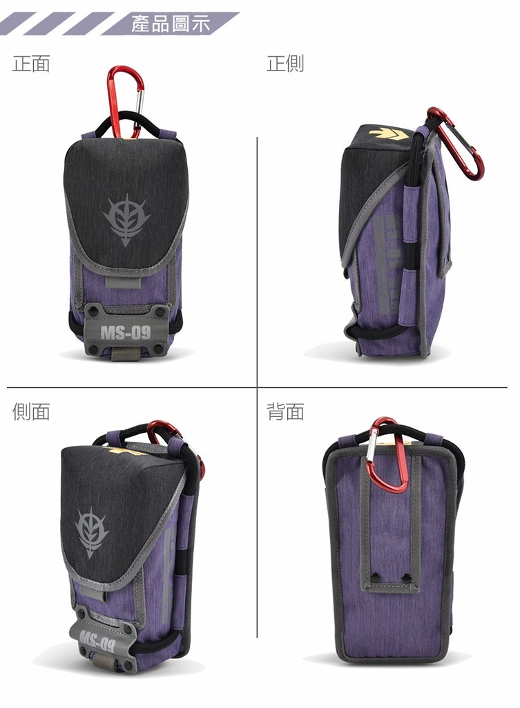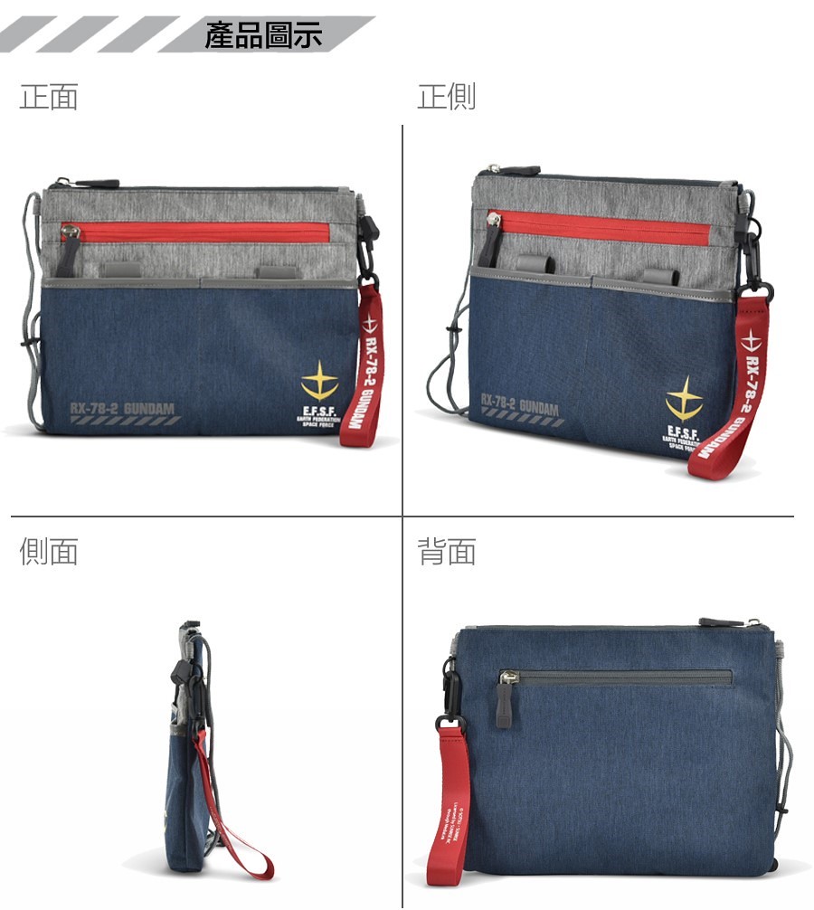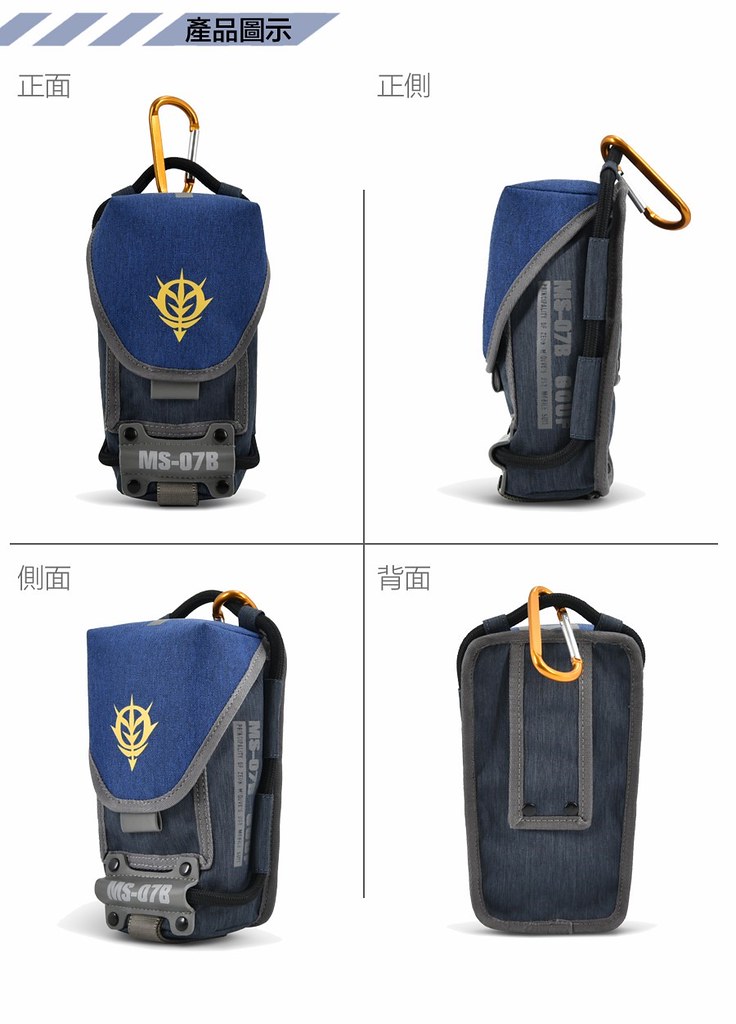 腰包、側背包同樣以「RX-78-2 鋼彈」、「MS-07B 古夫」、「MS-09 德姆」三架機體的色彩、機身標誌進行設計,沉穩色調中精巧配置圖騰,即使未曾接觸《機動戰士鋼彈》也能高度接受的簡約時尚風格。