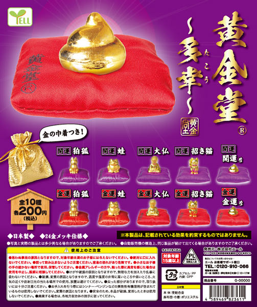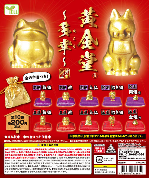 專門推出趣味轉蛋的日本玩具廠牌YELL(エール)將推出一款適合迎接新年、喜氣滿滿的轉蛋「黄金堂〜多幸」,一共推出十種款式,一轉售價為200元日幣,預計將於2019年12月發售。