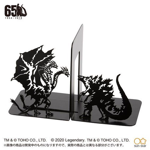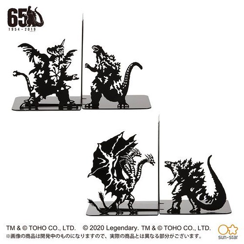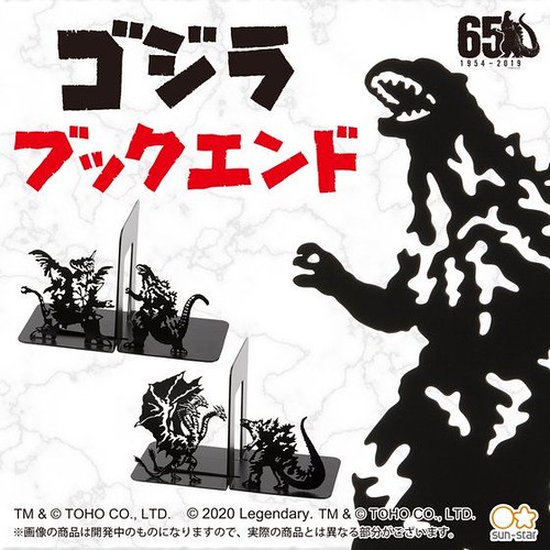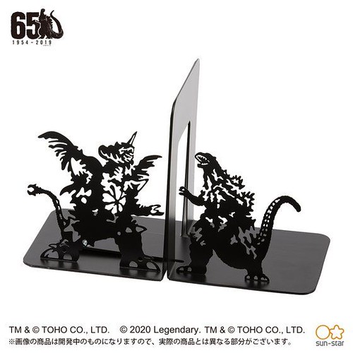 日本 SUN-STAR 文具公司(サンスター文具株式会社)推出了迎來65周年紀念的《哥吉拉》系列最新商品「哥吉拉 剪影造型書擋」(ゴジラ ブックエンド),一共推出兩種款式,用剪影呈現哥吉拉與怪獸們的激戰!預計於 2020年 05 月發售。