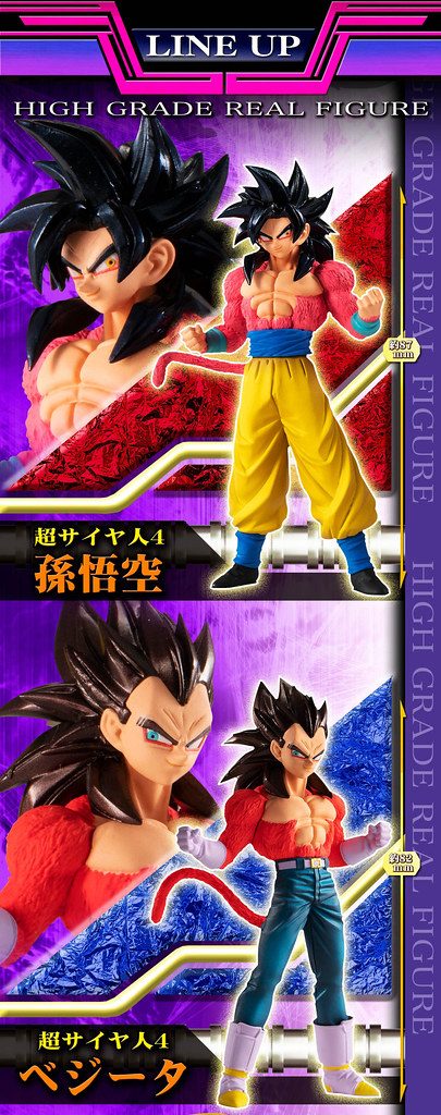 先前已有多款以《七龍珠》為題材的HG系列商品,這次推出許多龍珠迷中的經典之作《七龍珠GT》中的「大猿覺醒篇」!分別為超級賽亞人4悟空(超サイヤ人4孫悟空)、超級賽亞人4達爾(超サイヤ人4ベジータ)與大猿貝比(大猿ベビー)三個角色,悟空與達而為約 87mm、82mm的尺寸,特別的是大猿貝比有 173mm 大!擺放在一起的比例突顯了大猿的魄力大尺寸!