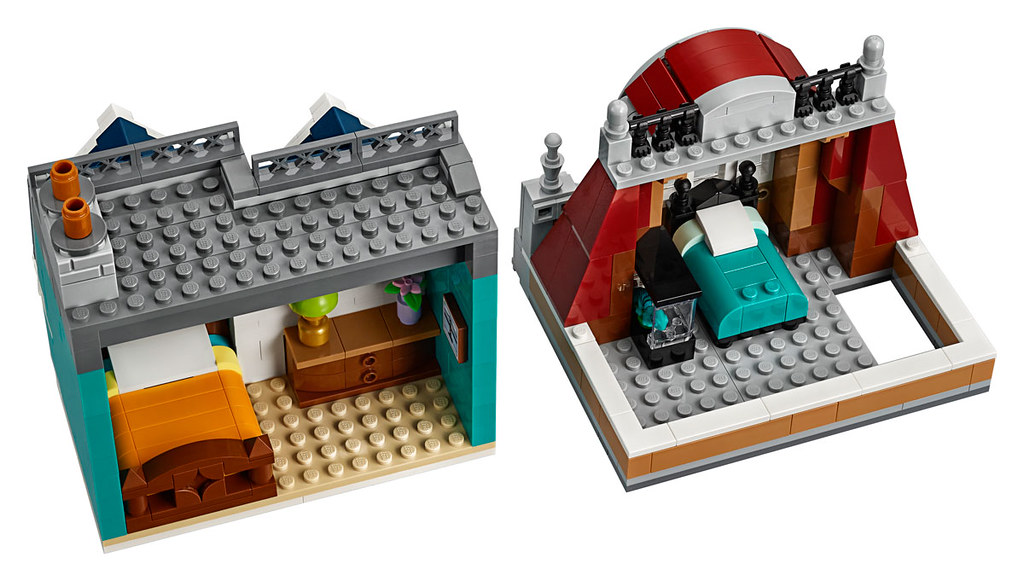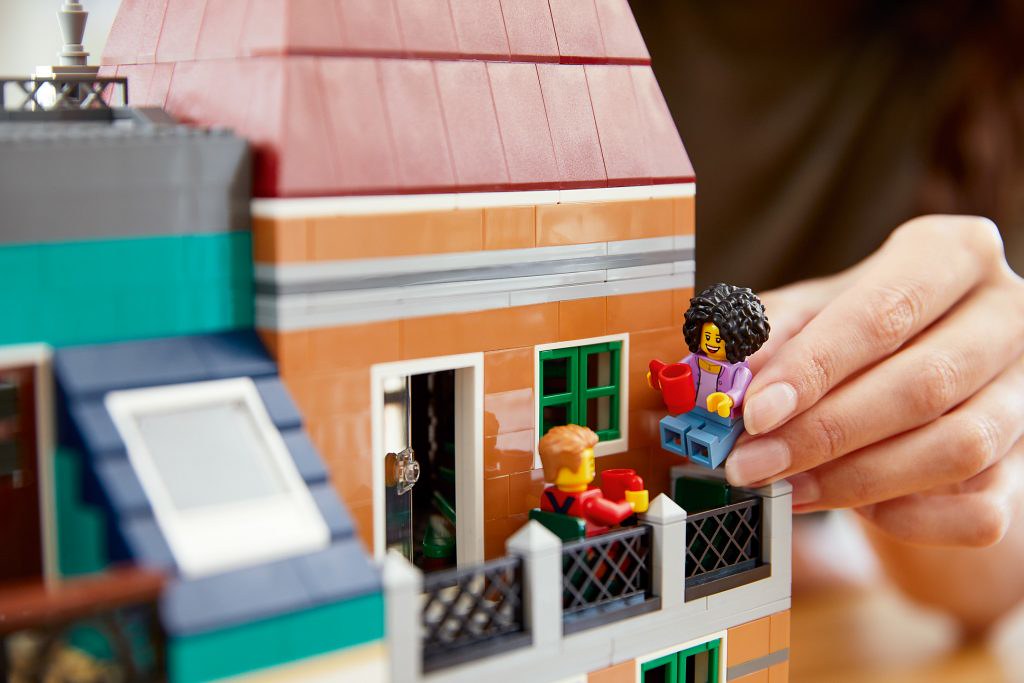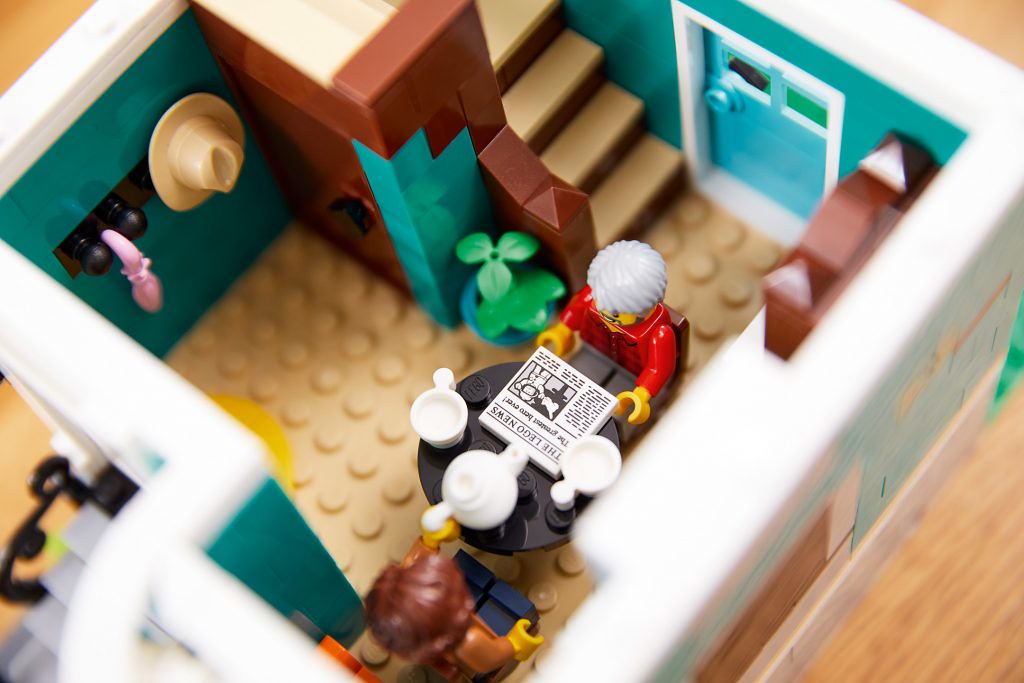 讓許多樂高迷瘋狂、富含拼搭樂趣的 Creator Expert 模組化建築(也就是樂高玩家之間俗稱的街景)在兩棟充滿美式復古風格的作品:市中心餐廳、轉角車廠之後,本次的「LEGO 10270 書店」回歸了優雅、古典的歐式風味,與先前推出的巴黎餐廳可說是絕配!外觀上是以褐色配赭紅色拼上兩種深淺不同的藍色為主調,結構則是兩棟房屋合併在一起的形式,就連底版也是兩塊長方形,位置可任意互調(如包裝盒正、背面所示),組裝完成後高約 29 公分。