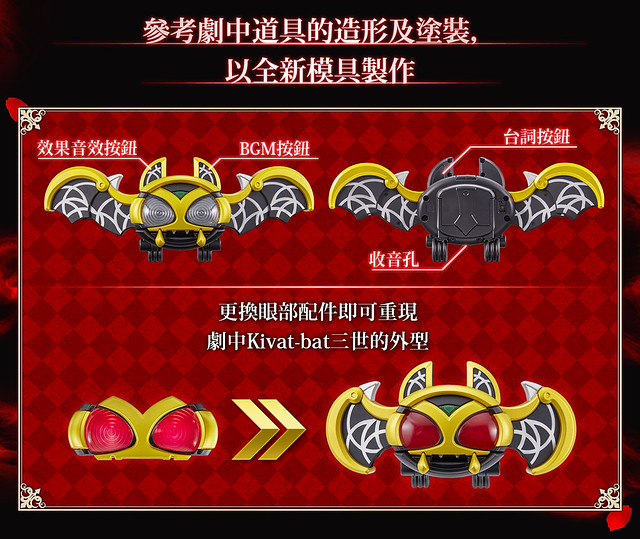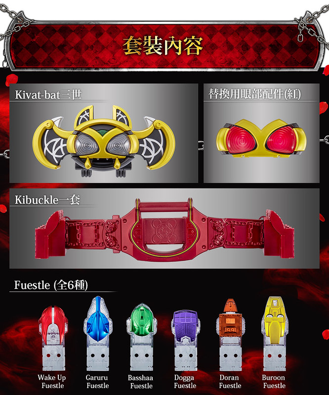 「CSM KIVAT 變身腰帶」以劇中造型為基礎透過全新模具製作,內容包含 KIVAT BAT 三世、KIVAT BAT 三世紅眼替換零件、腰帶 KIBUCKLE、6 種 Fuestle。作為本體的 KIVAT BAT 三世收錄了聲優杉田智和先生全新錄製的語音,並搭載可與其對話的「聲音辨識系統」、讓其與 Tatsulot 互相對話的「無線通信系統」、進行移動就能播出飛行音效的「速度感應器」。