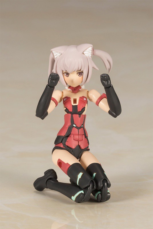 配件則有兩種印刷完成的臉部零件(普通臉、笑臉)、兩種無印刷臉部零件、眼睛造型貼紙、貓耳造型前髮零件、PVC 製造型手掌、2mm to 3mm 轉接零件等,能配合同系列商品或壽屋另售的 M.S.G、HEXA GEAR、骨裝機兵...等組裝模型系列使用,自由替換零件。