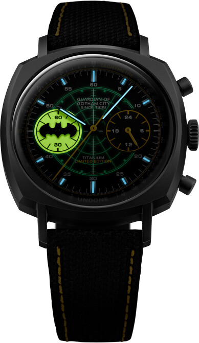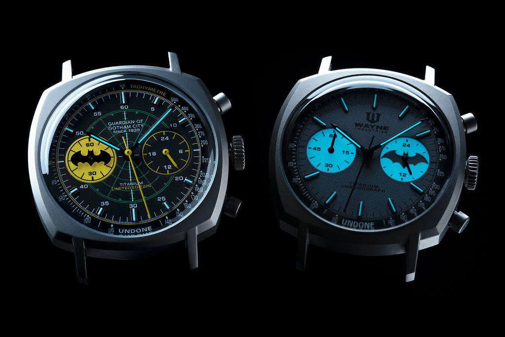 為慶祝DC漫畫公司旗下知名的人氣作品《蝙蝠俠》(Batman)80周年,手錶品牌 UNDONE 推出兩款蝙蝠俠80週年的限量聯名腕錶款:蝙蝠俠經典電玩遊戲「The Caped Crusader」和賣作電影「The Dark Knight」,兩個蝙蝠俠的最重要時期為錶款命名紀念,也是 UNDONE 品牌首度推出的鈦金屬腕錶,售價為¥43,000日幣,已於 2019年 12月 5日開始販售。