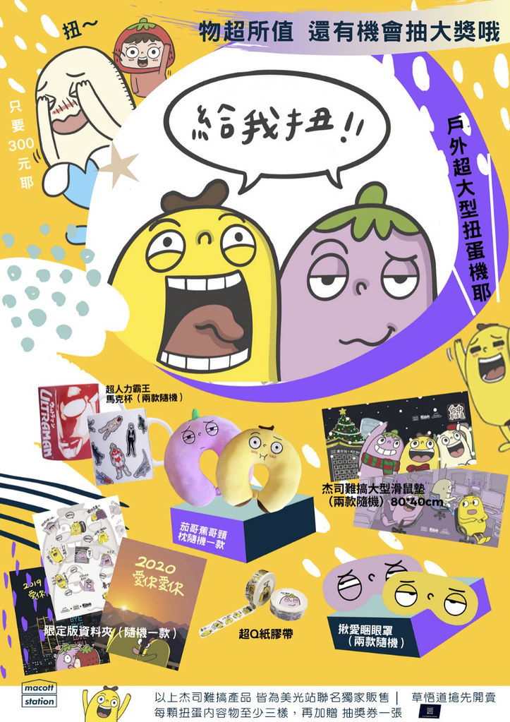 接著是「杰司·難搞」主題的周邊區,茄子哥與香蕉哥的可愛造型與日常感十足、但往往觸動內心的對話,一定擄獲了不少玩具人吧!這次快閃店帶來了月曆、明信片、資料夾......等生活小物,而且之後還會有頸枕、眼罩、雙層杯這類商品登場,粉絲們可別錯過囉!而且只要出示「玩具人文章截圖」即可兌換「限量版杰司·難搞文件夾乙個」(數量有限,換完為止)。
