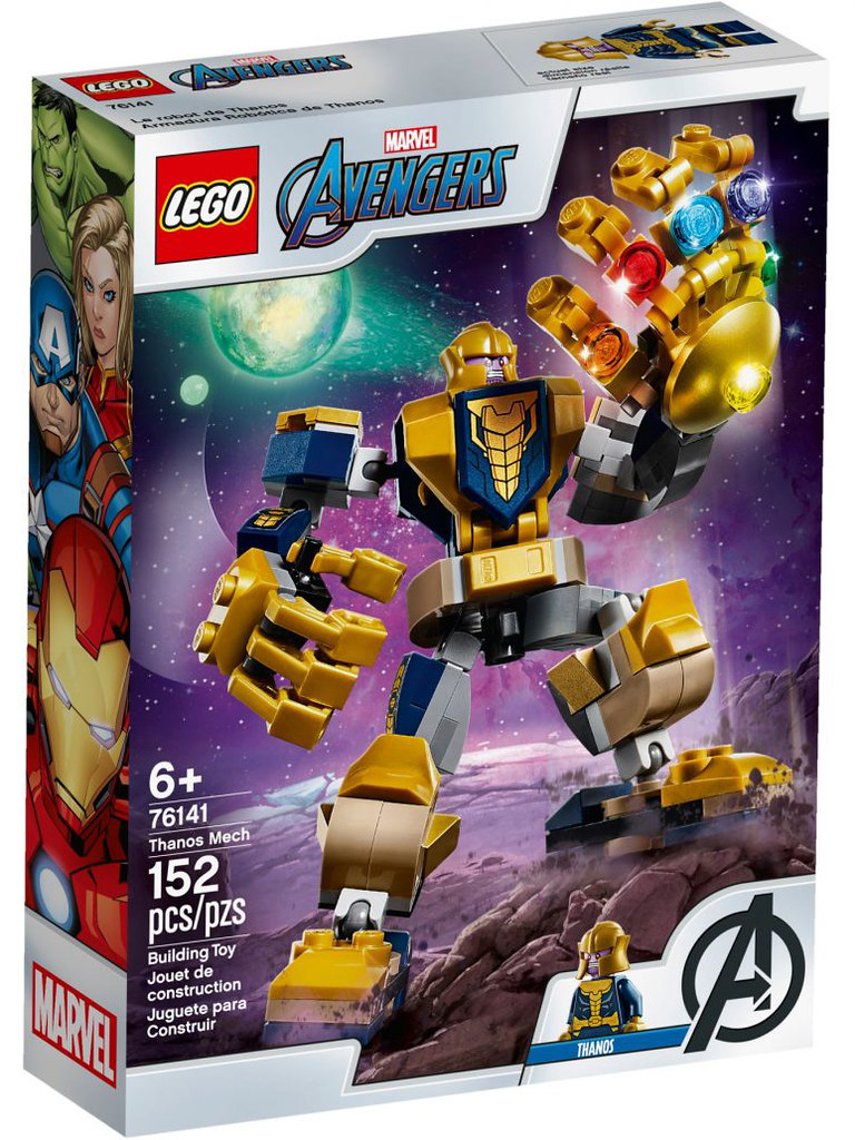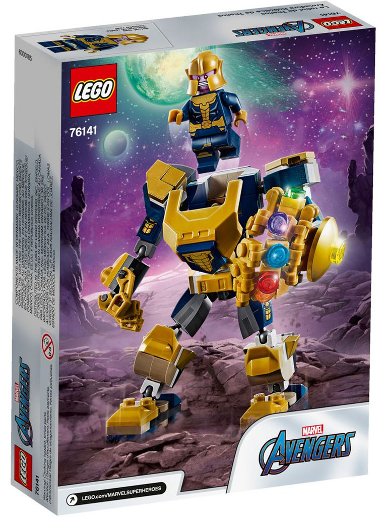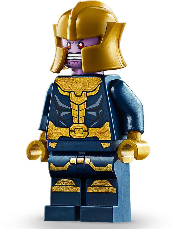 薩諾斯機甲在概念上與鋼鐵人機甲相似,最酷的就是以較多零件組成左手掌,營造出戴上無限手套的樣貌,而且六顆無限寶石更是鑲好鑲滿!薩諾斯的樂高人偶在這裡是採用戴上頭盔的重裝造型設計。
