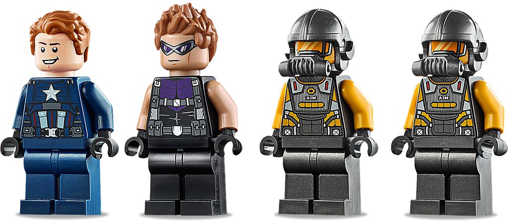 最後要看到的是零件數更多的組合,復仇者方面是美國隊長與鷹眼,超智機構探員則有兩位,復仇者的藍色卡車搭載了展開機構與武裝,娛樂性十足,超智機構這邊是一台造型微妙的三輪車、人偶可裝備的噴射背包,以及一台無人機。