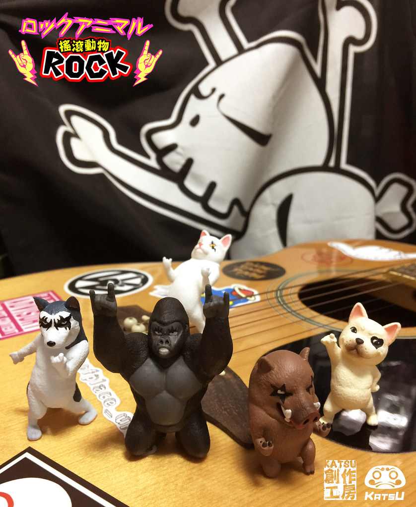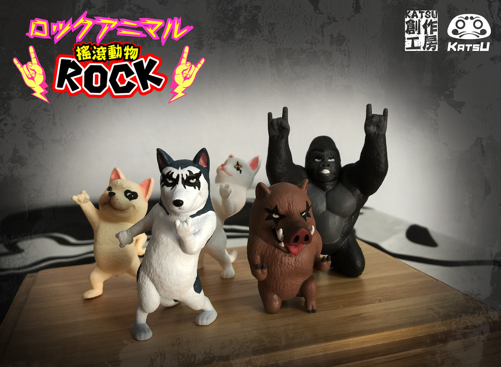 在充滿壓力的現代社會,每個人都靠著各自的方式來舒緩精神上、身體上的壓力,像廣大的玩具人們當然就是藉著收藏各種心愛的玩具來療癒身心啦~如今,就連動物們也開始了牠們的解放之旅!KATSU 創作工房這次把各種動物逼真擬人化,再注入重金屬搖滾元素與強烈妝容,打造出惡趣味滿滿的搖滾動物!