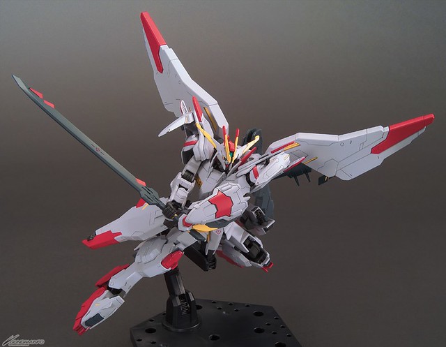 「HG 1/144 翼魔鋼彈」套件再現了特徵的四條輔助機械臂展開機構,能像設定一般同時裝備四把短劍進行攻擊,同時附上主武裝「破壞鎚矛/大太刀」與左臂的小型盾牌,手甲部份可反轉向前方作為鉤爪使用。