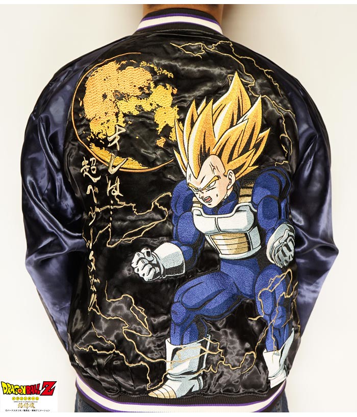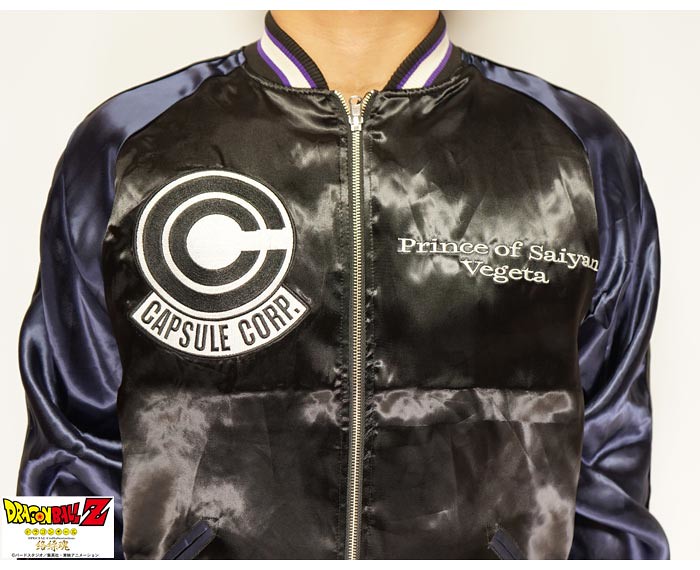 外套整體為藍黑配色,背後是達爾集氣時的經典動作,搭配月亮為背景;正面有膠囊公司(カプセルコーポレーション)的標誌和刺繡字:Prince of saiyan Vegeta,展現賽亞王子的驕傲。