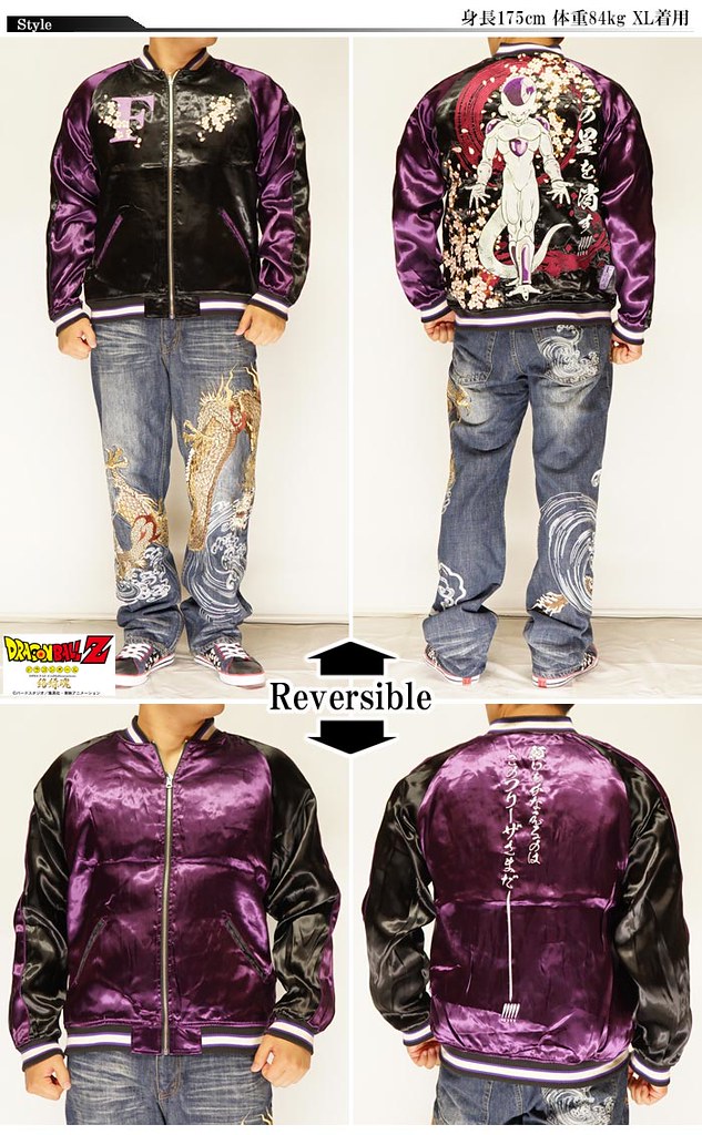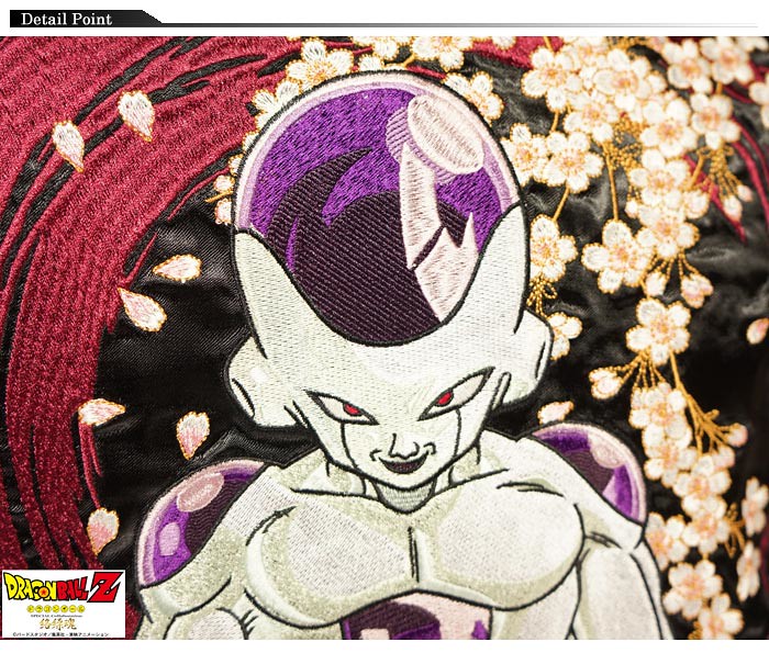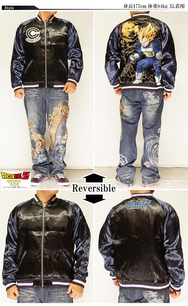 以大人氣角色「超級賽亞人 悟空」、「超級賽亞人 達爾」與宇宙大王「弗利沙」為設計,搭配傳統的花紋樣式「和柄」,推出三款精彩而華麗的刺繡外套。日文原名為「スカジャン」的「Sukajan」刺繡外套,是「橫須賀(Yokosuka)」和「夾克(Jampa)」的合稱,使用具有光澤感的人造醋酸纖維布料,以和服常用的橫振刺繡工法精緻呈現圖樣。在二次世界大戰後,駐日士兵將刺上所屬艦隊或部隊名稱以及有著鷲、虎、龍等東方色彩圖案的 Sukajan 作為帶回國的紀念品,因此又被稱為「紀念夾克」。之後則逐漸成為日本年輕人的流行單品。