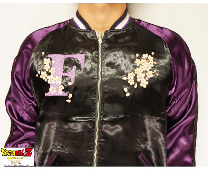 紫黑配色與弗利沙的招牌動作,背面帶著粉色落櫻與櫻花,卻是搭配大反派宇宙帝王弗利沙的微笑;正面則是代表弗利沙的字母F與和風櫻花的圖樣。