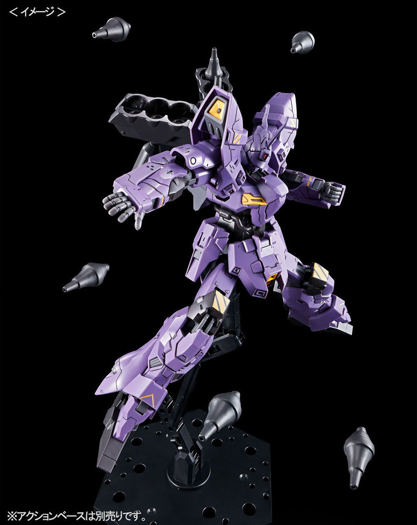 「HG 1/144 巴爾基爾」套件在身軀部份沿用過去推出的 HG 1/144 MOON鋼彈,擁有 HG 系列中極為出色的分件分色、細節刻畫與可動設計,兩條腿擁有骨架結構。而特徵的獨眼頭部、未來應用在沙薩比的感應砲背包都採用新規零件製作,整體成形色也替換為獨特的紫色。武裝則附上了與 MOON鋼彈相同的光束戰斧、光束部槍與光束蝴蝶刀。