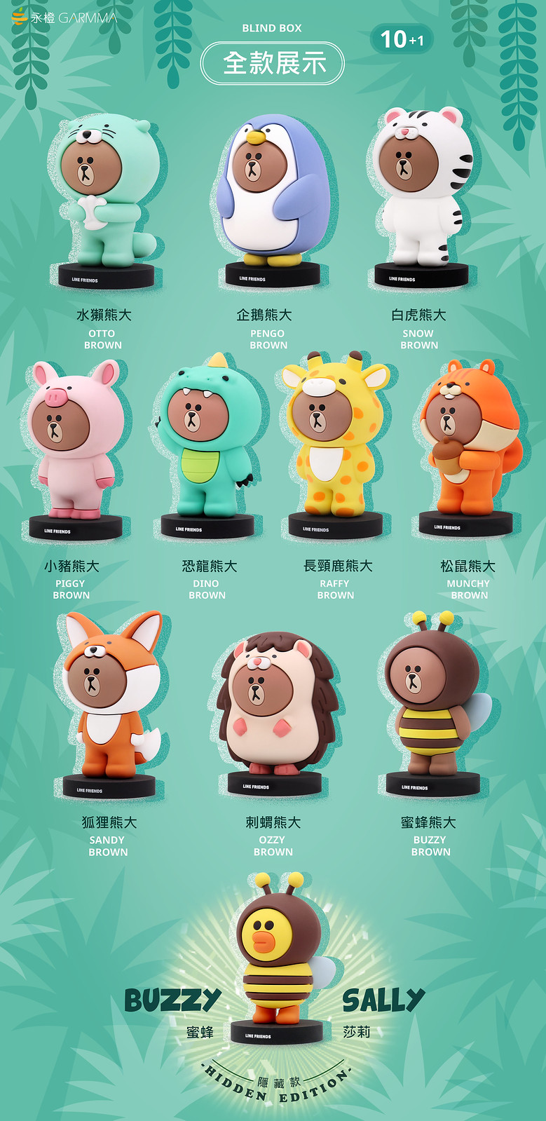 ▼ 這個 Brown Friends 盒玩要抽起來吧~把各種動物的布偶裝套在熊大身上也太犯規可愛了!隱藏版是極致療癒的蜜蜂莎莉。