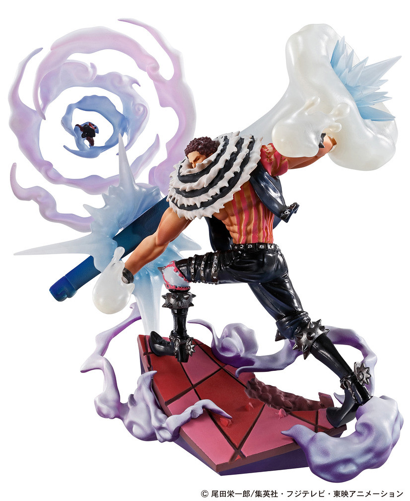 以漸層上色再現了發動武裝色霸氣的光澤、堅硬感,龐大的上身極具魄力,肌肉形狀、服裝皺褶也有不錯的刻畫,漂浮在周圍的白煙特效更加強了整體張力。