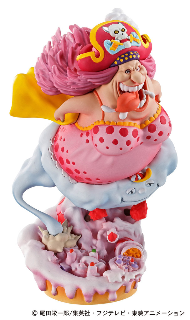 因為大爆炸而暴走的 Big Mom,失去理智的神情、乘著宙斯飛馳的動態、服裝細節都很不錯,場景則是被鮮奶油覆蓋的島嶼。