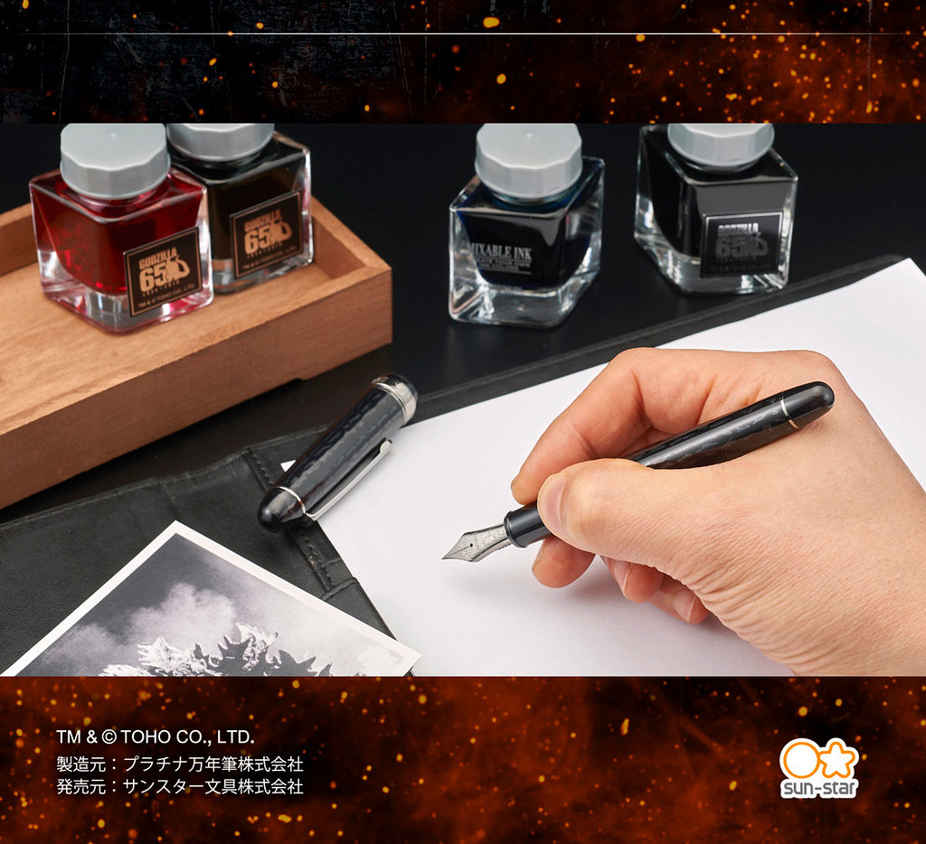 日本SUN-STAR 文具公司(サンスター文具株式会社)推出了迎來65周年紀念的《哥吉拉》系列最新商品「哥吉拉 鋼筆特製墨水套組」(ゴジラ 万年筆),參考售價為日幣 34,980 円,預計將於 2020 年 05 月發售。