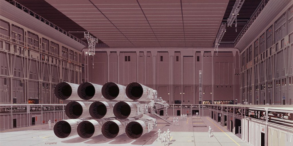 後來概念設計師拉夫麥奎里(Ralph Mcquarrie) 與喬強斯頓(Joe Johnston)更加優化了這艘海盜船:加大了前頭的駕駛艙,並突顯了尾部的 11 具噴射口。嗯,長長的莖部、前頭膨起的水滴狀駕駛艙……這看起來是不是有點像……不管了,盧卡斯已經說過了,《星際大戰》不是拙劣的諧仿喜劇,快收起我的汙穢思維。
