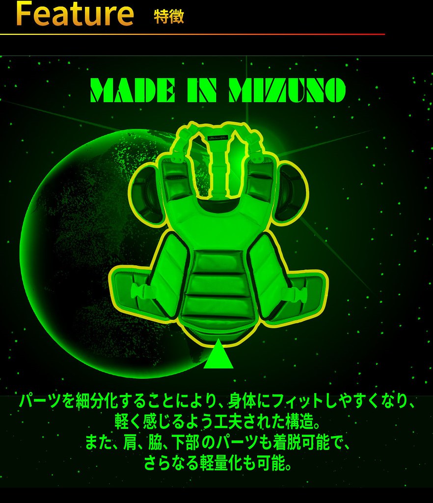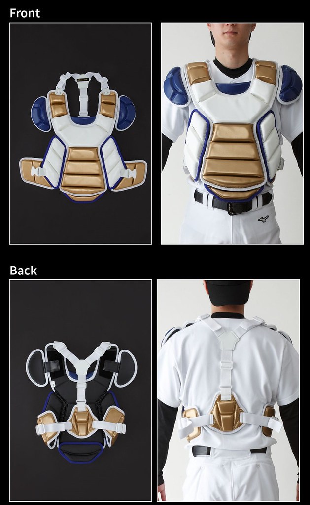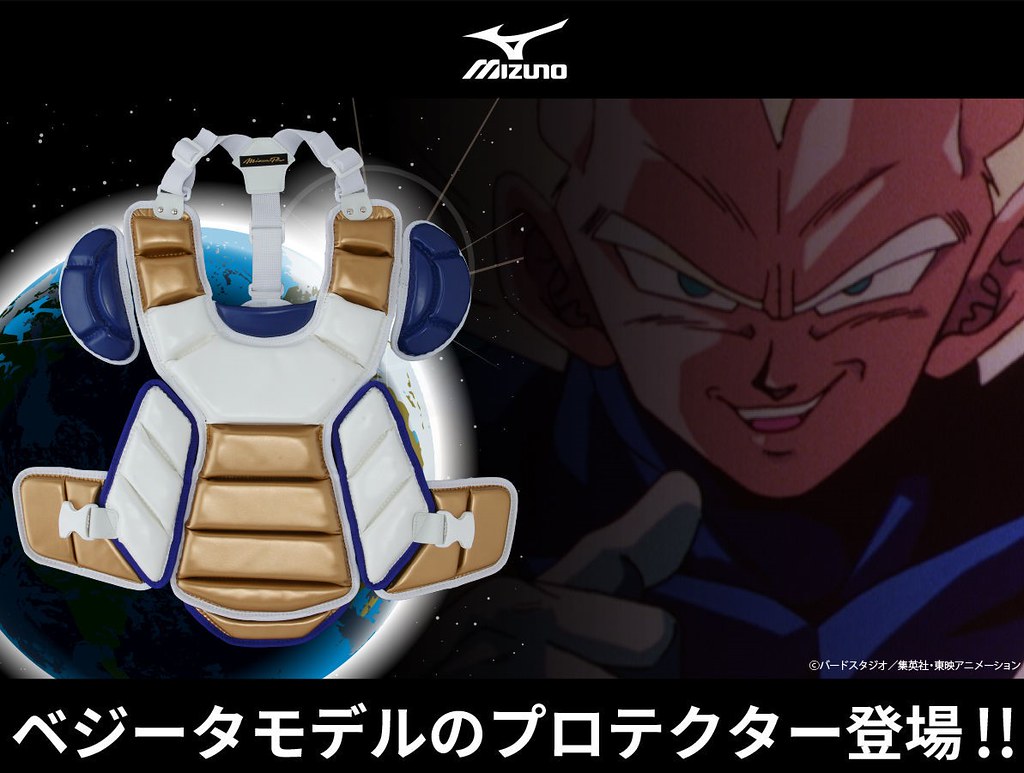 以《七龍珠Z》中,角色達爾的賽亞人戰鬥服為設計靈感,與日本最大的體育用品及運動服裝製造商MIZUNO 美津濃開發出造型獨特,並且兼具使用性能的捕手護具!護胸的部分完全仿造戰鬥服的樣式,以藍白為主色調,搭配金色點綴。並且可以拆卸肩、側邊及下部等,更輕便地大展身手!